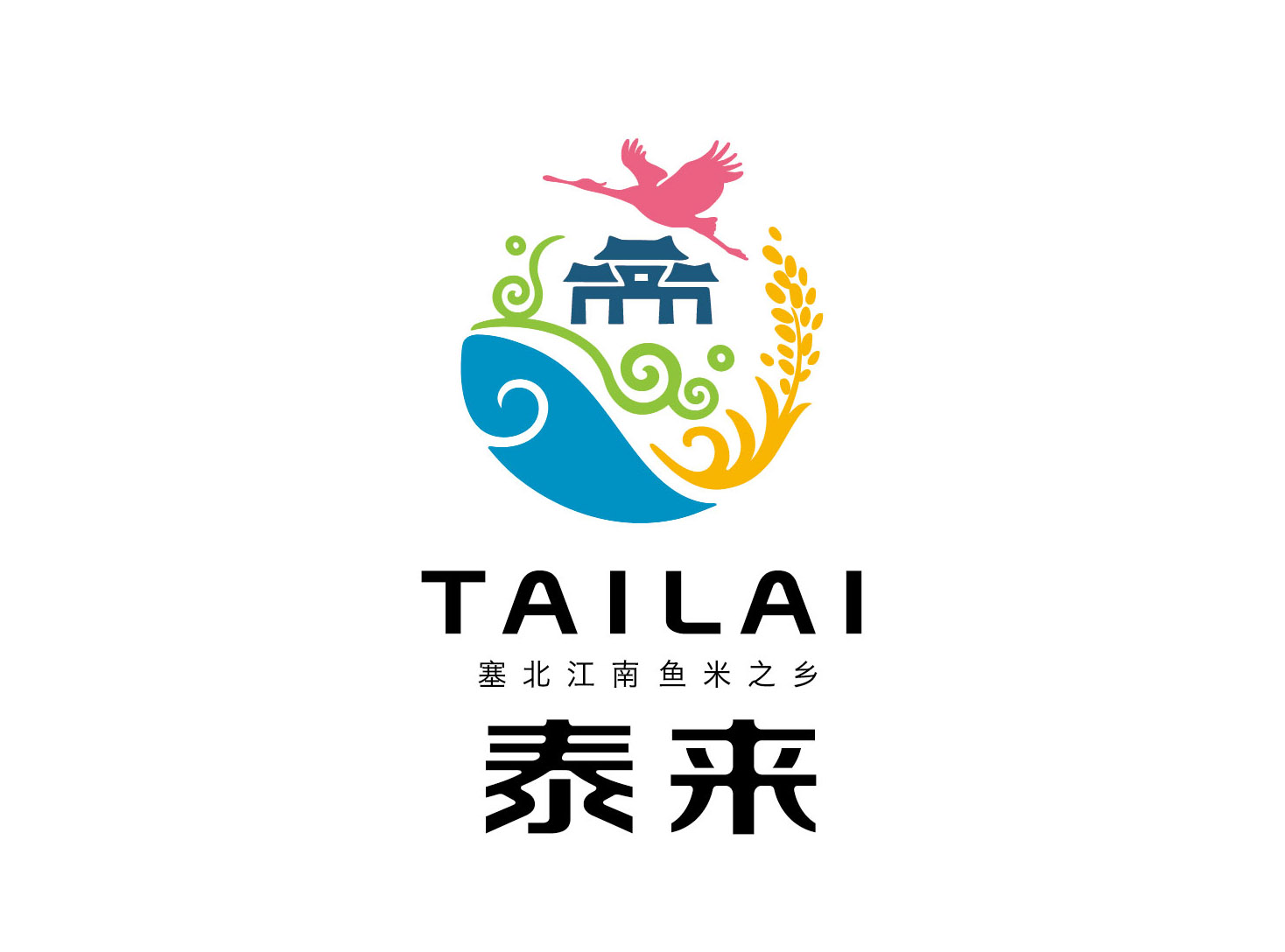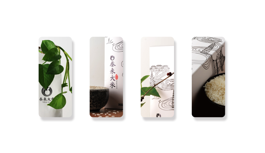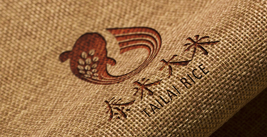 以“泰來大米”四個字為主設(shè)計,加入魚米元素更有記憶點。
