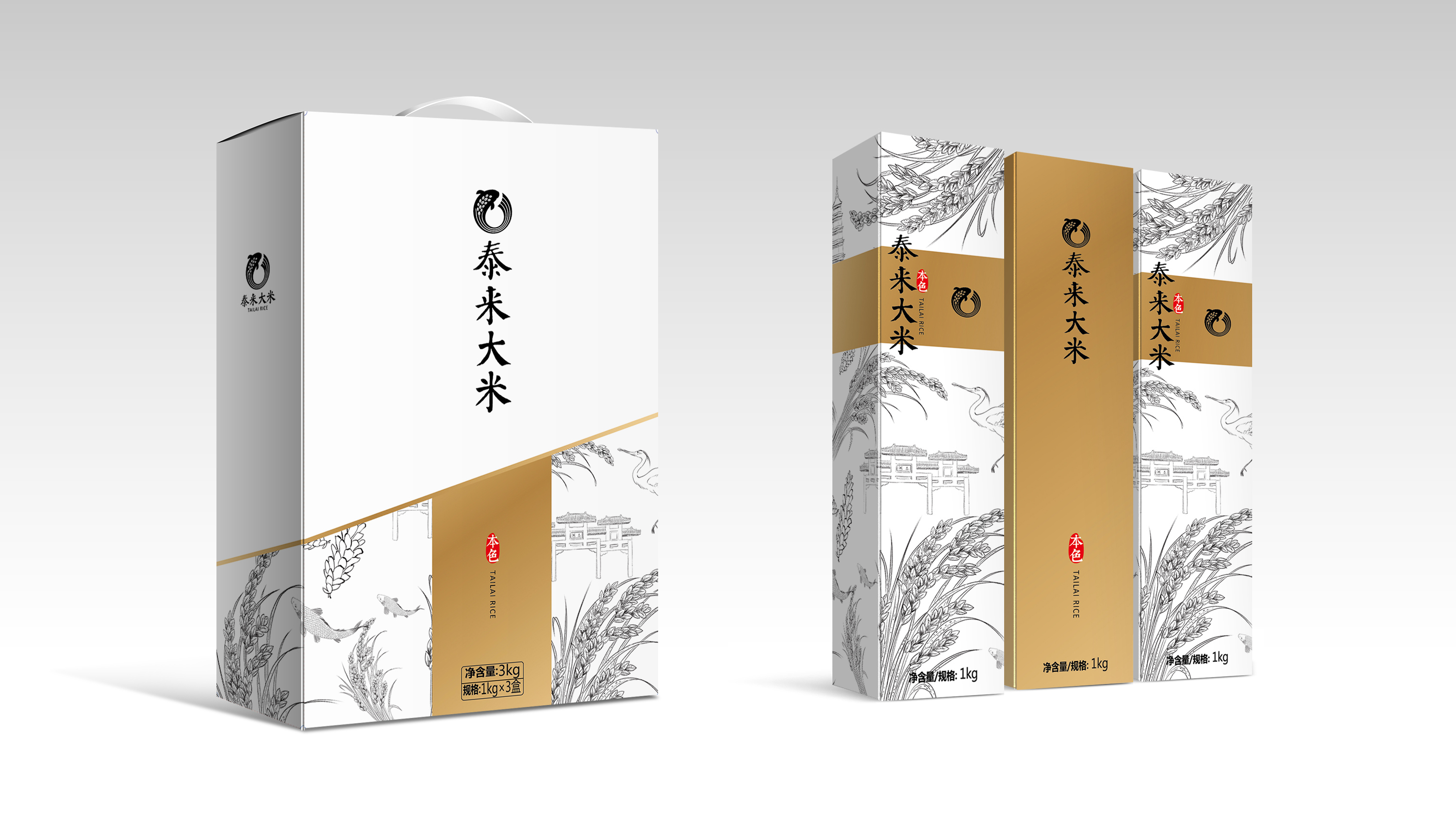 以“泰來大米”四個字為主設(shè)計,設(shè)計袋裝、盒裝、精品禮品裝幾個系列,但風(fēng)格要統(tǒng)一。