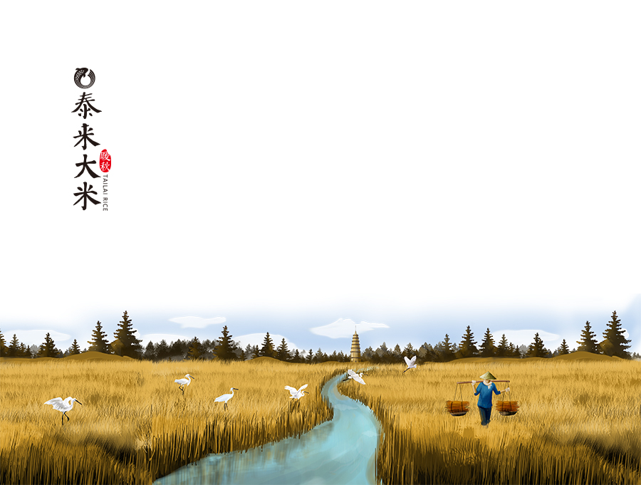 西林設(shè)計插畫師從暖秋的意象出發(fā),畫出溫暖的泰來,且稻田中的幾只白琵鷺,更突顯泰來的寧靜祥和。