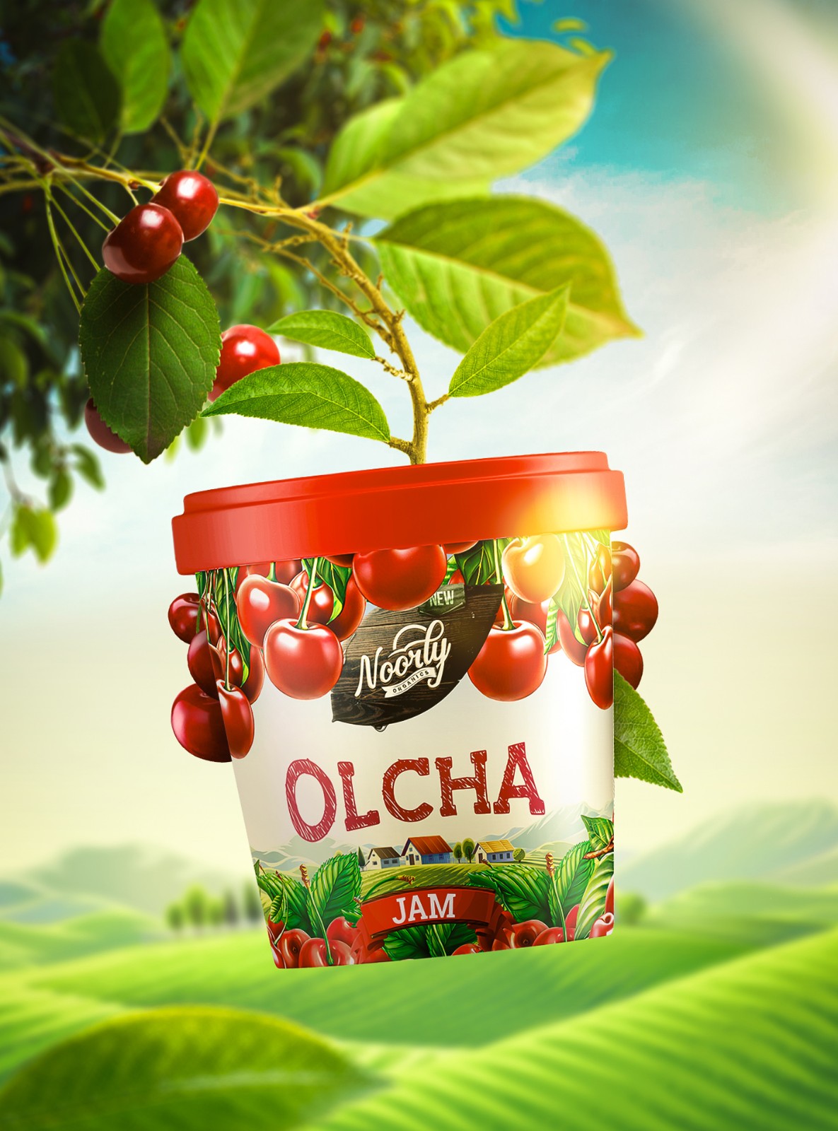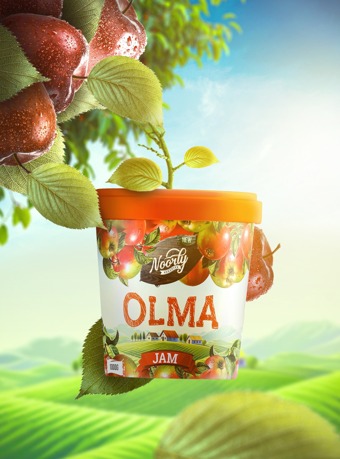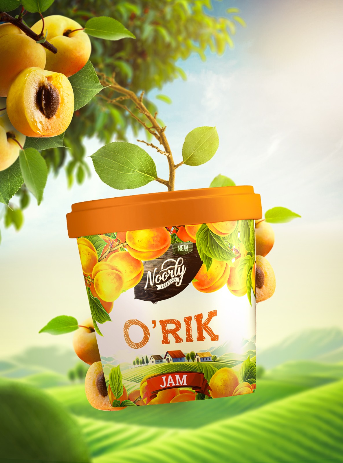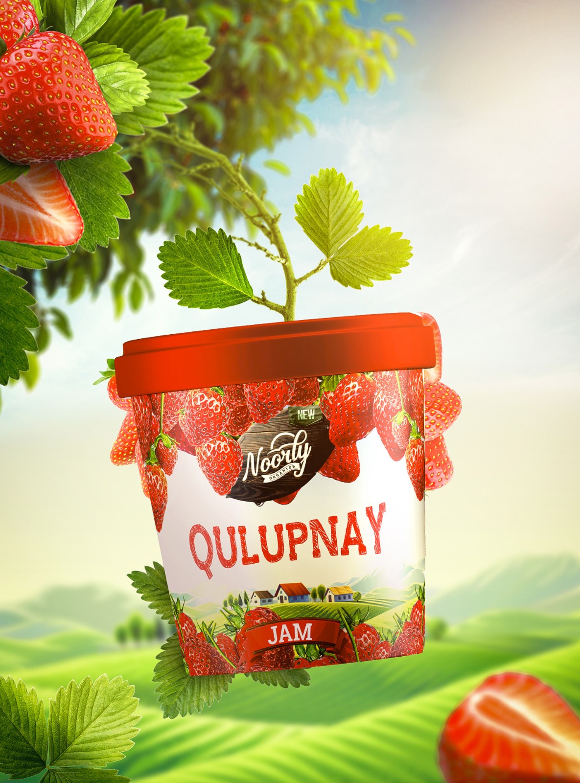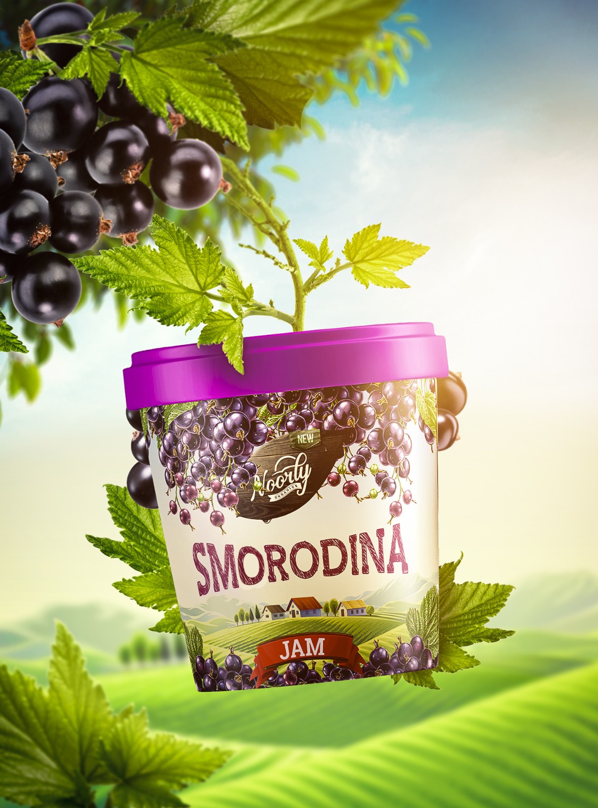 背景上的鄉(xiāng)村房屋由我們的插畫師完全掌握,并由平面設計師修飾。包裝可以適應不同的廣告畫布,如廣告牌、海報、數(shù)字促銷甚至品牌貼紙。最后但并非最不重要的一個細節(jié),我們決定用現(xiàn)代烏茲別克語命名果醬類型,以便當?shù)厝丝梢暂p松識別哪種產(chǎn)品適合他們的口味。