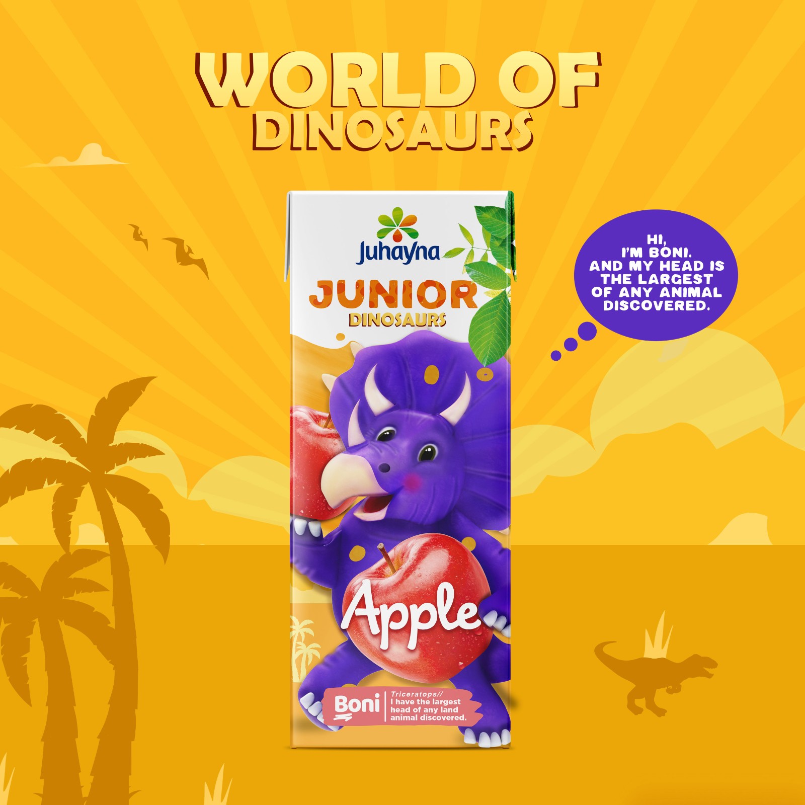 我們首先對(duì)Junior標(biāo)志進(jìn)行了全面改造,以鮮明的顏色選擇反映恐龍凹凸和鱗片般的皮膚紋理,始終在包裝上脫穎而出。。每一個(gè)包裝都是關(guān)于恐龍的不同分類的信息,將每個(gè)角色的世界與風(fēng)味的水果結(jié)合在一起。根據(jù)客戶反饋選擇恐龍口味對(duì)兒童選擇果汁有很大影響。