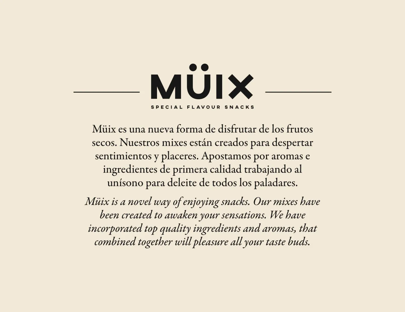 Barquellas零食品牌和包裝設(shè)計項目Müix。一個巴倫西亞品牌的美味堅果,一個大膽的創(chuàng)新,組合和口味的賭注,以喚醒感覺和樂趣,扭轉(zhuǎn)了該公司的家庭傳統(tǒng)。該系列包括兩個不同的類別,民主和高級。