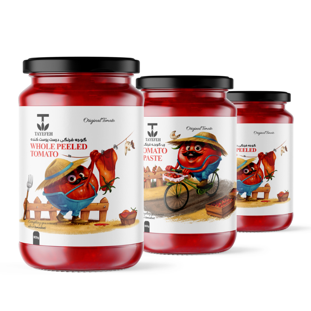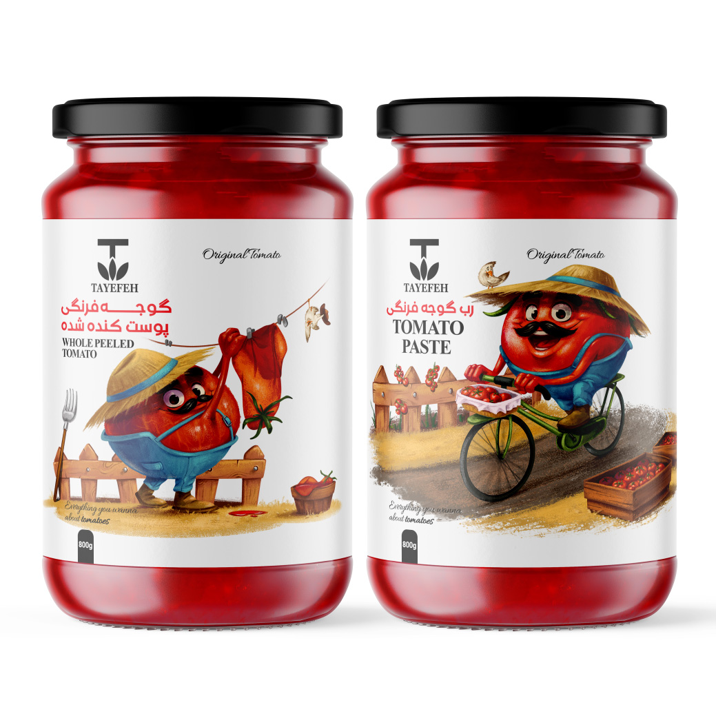 Tayefeh 品牌是食品生產(chǎn)領(lǐng)域的老品牌,這也是品牌名稱來源于傳統(tǒng)伊朗名稱的原因。在提供新產(chǎn)品時,該品牌有兩個重要的優(yōu)質(zhì)產(chǎn)品在市場上銷售:去皮番茄和第二番茄醬。因此,根據(jù)所做的研究,決定為這些產(chǎn)品使用個人插圖,但更精確的目標(biāo)是這些圖像表現(xiàn)出健康和活力,并且設(shè)計得非常具體。