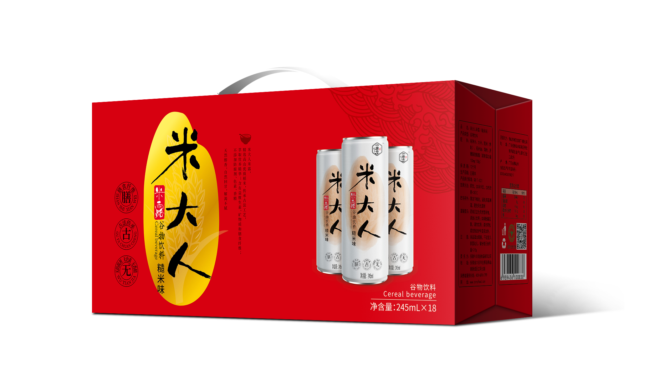 項(xiàng)目背景:中川食品旗下的 “小唐家”米大人推出的高端谷物飲料,精選高山優(yōu)質(zhì)稻米,用傳承古法工藝,選用全球第一大酶制劑公司進(jìn)行生物酶解,不添加防腐劑、色素和香精;作為谷物之首的稻米,其營養(yǎng)價(jià)值不容忽視,而隨著國內(nèi)消費(fèi)水平的升級和健康意識的增強(qiáng),米飲的價(jià)值也越發(fā)凸顯。“米大人”經(jīng)東方傳統(tǒng)工藝與高科技現(xiàn)代生物技術(shù)融合,經(jīng)過18道工序汲取精華而成的健康飲品。2018年重榜推出。在風(fēng)光旖旎的大別山腹地——長壽之鄉(xiāng)金寨縣,處處縈繞著自然精粹的味道。坐落在金寨縣的安徽中川農(nóng)業(yè)食品有限公司,依托國家級生態(tài)示范區(qū)生產(chǎn)高山有機(jī)稻米,采用人工除草、不噴灑農(nóng)藥的種植方式,保證了米飲原料的品質(zhì)和稀有。