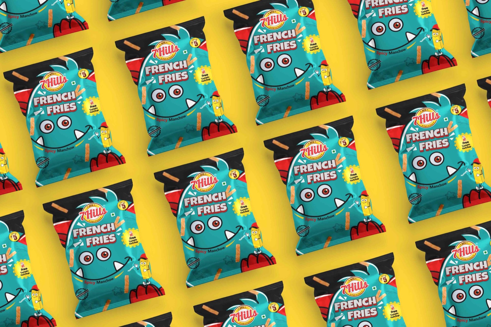 薯?xiàng)l:這包薯?xiàng)l的設(shè)計(jì)考慮到了薯?xiàng)l的辣味。包裝上的人物是一根薯?xiàng)l,戴著一頂可愛(ài)的帽子,這是通過(guò)繪畫(huà)創(chuàng)作的。這個(gè)設(shè)計(jì)的中心人物是水色的。