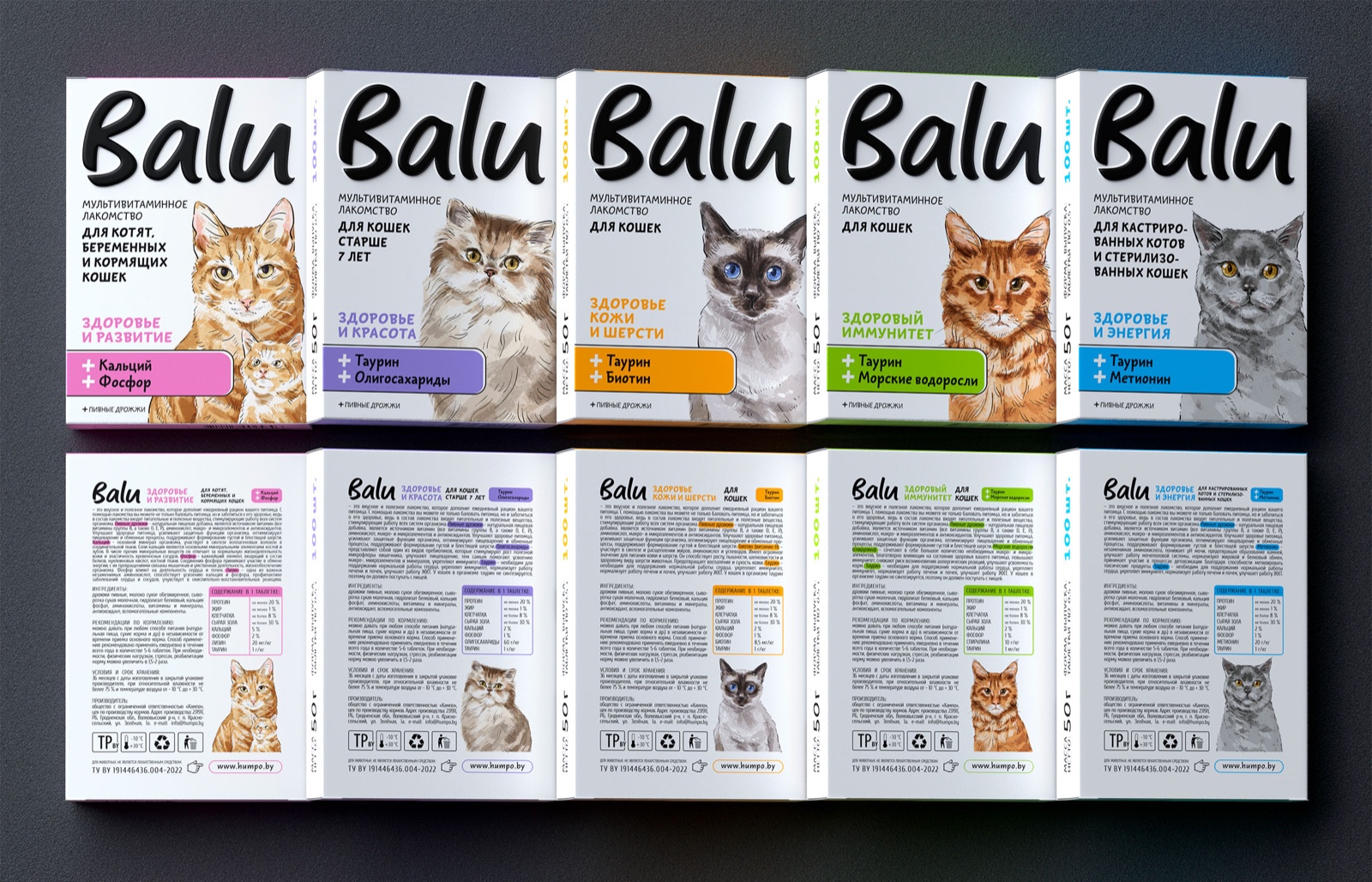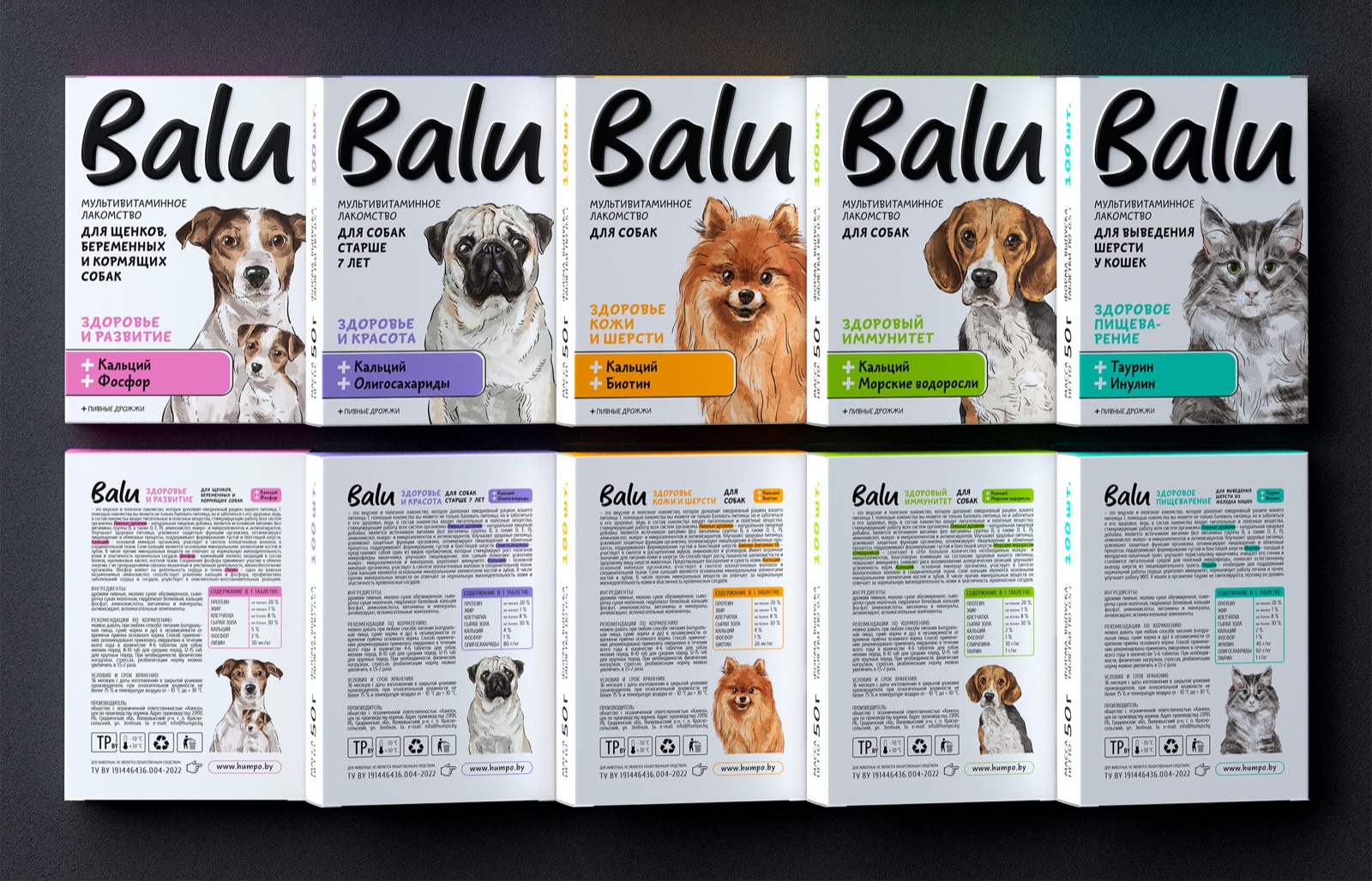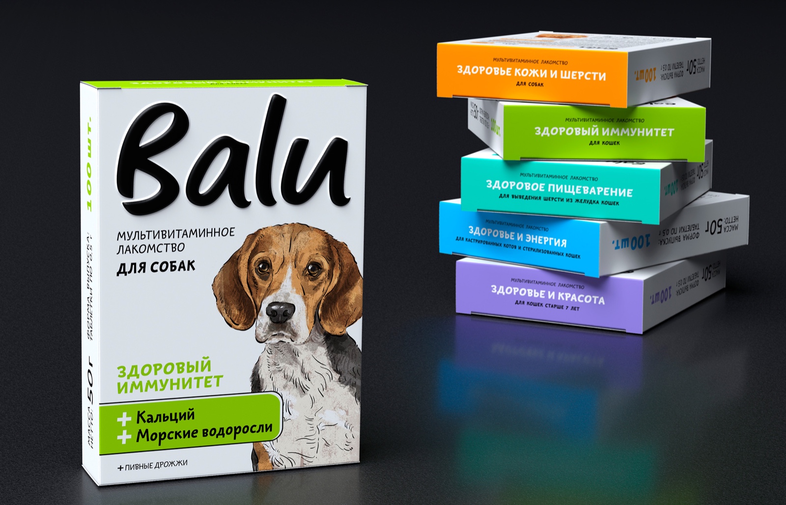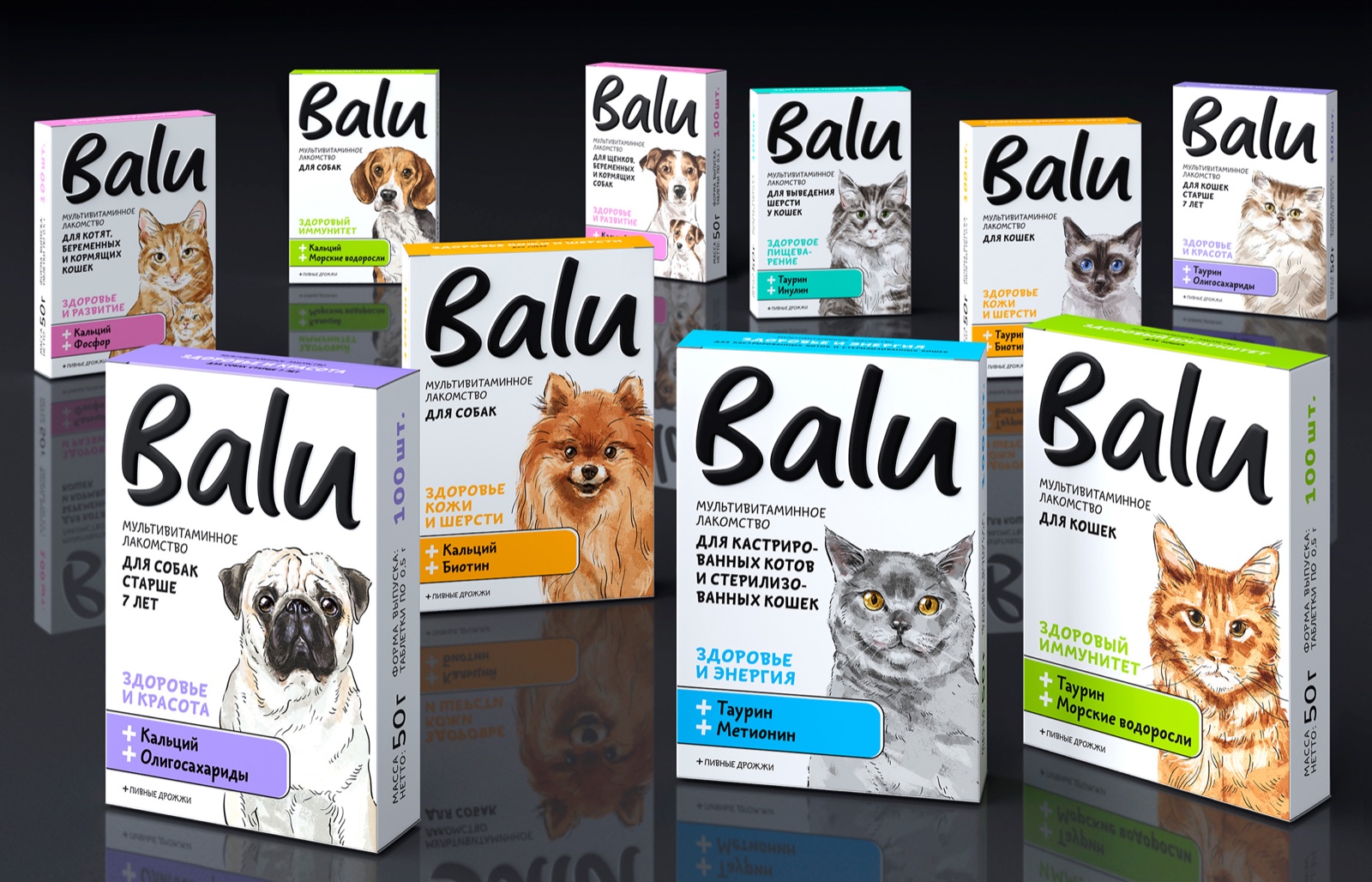 TM Balu系列補(bǔ)充了一種新的流行產(chǎn)品——一種復(fù)合維生素佳肴,旨在增強(qiáng)寵物的免疫系統(tǒng)和健康。它不是藥物,被用作動物食品的添加劑。所產(chǎn)生的維生素復(fù)合物以片劑的形式生產(chǎn),并包裝在單獨(dú)的紙箱中。該系列包括四種狗用產(chǎn)品和六種貓用產(chǎn)品。