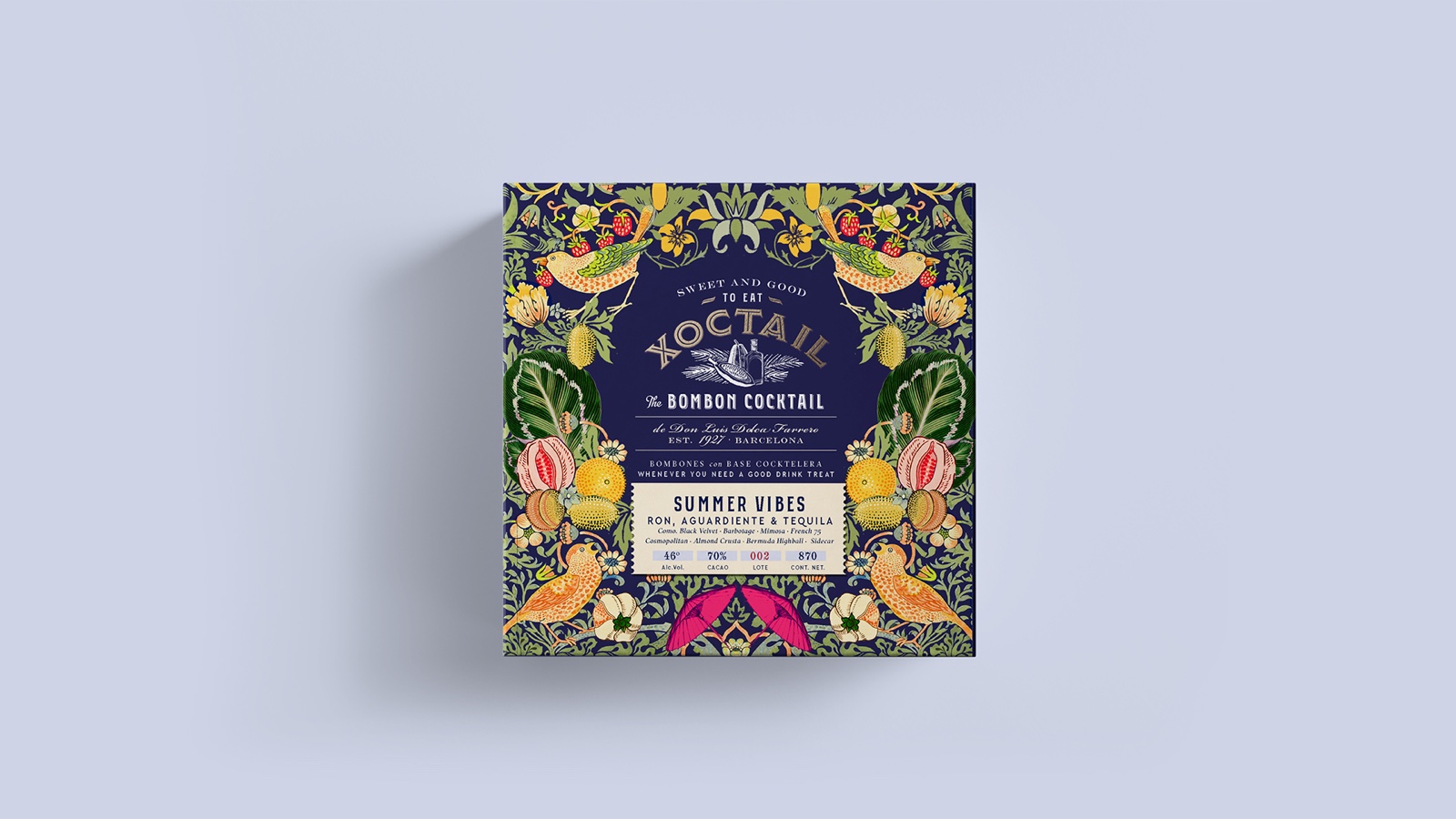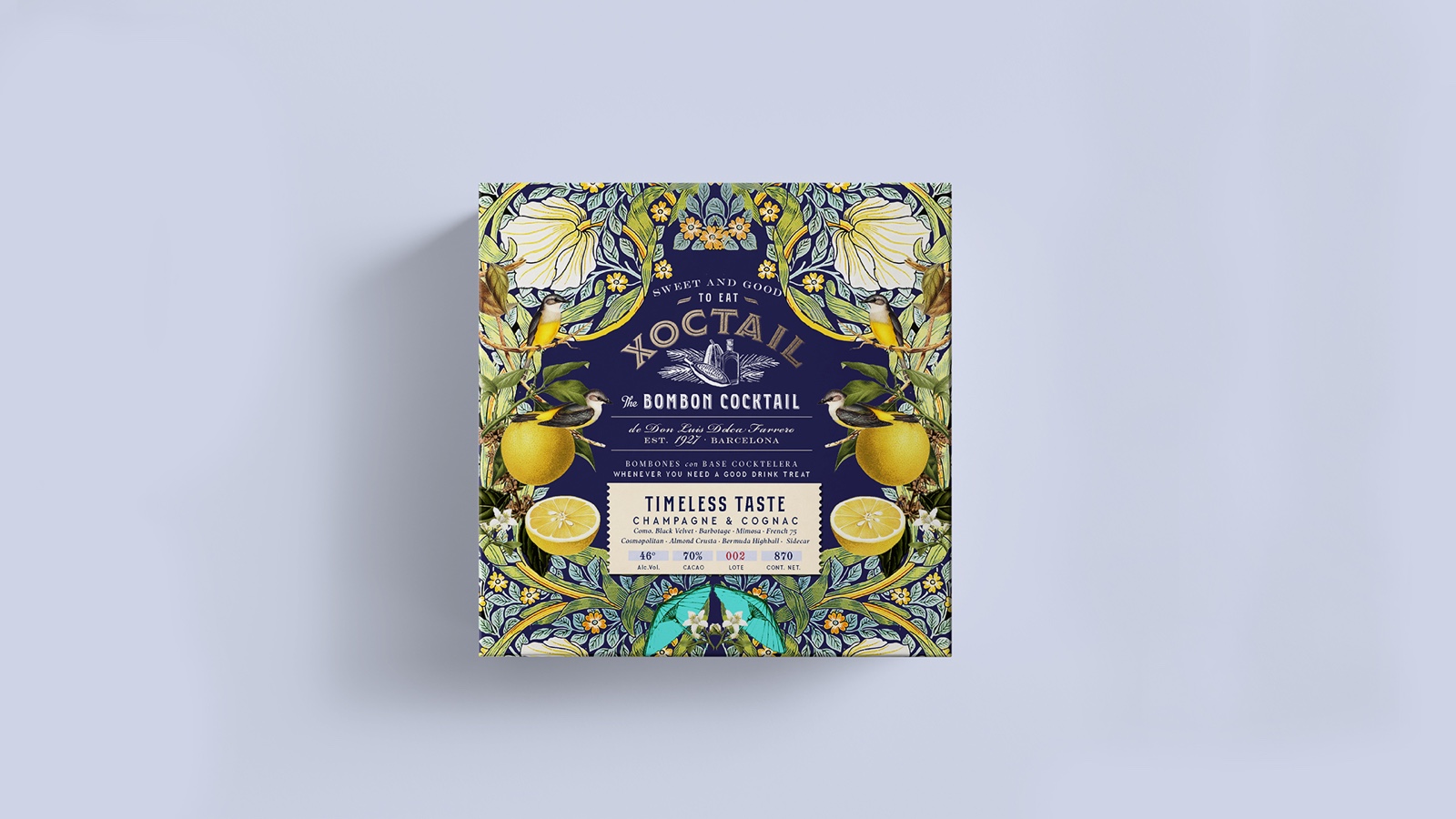 雞尾酒底巧克力包裝設(shè)計(jì)。靈感來源于威廉·莫里斯(1834-1896)的圖案。挑戰(zhàn)在于通過獨(dú)特大膽的口味,將非常傳統(tǒng)的產(chǎn)品與現(xiàn)代時(shí)尚的外觀結(jié)合起來。重塑傳統(tǒng)。