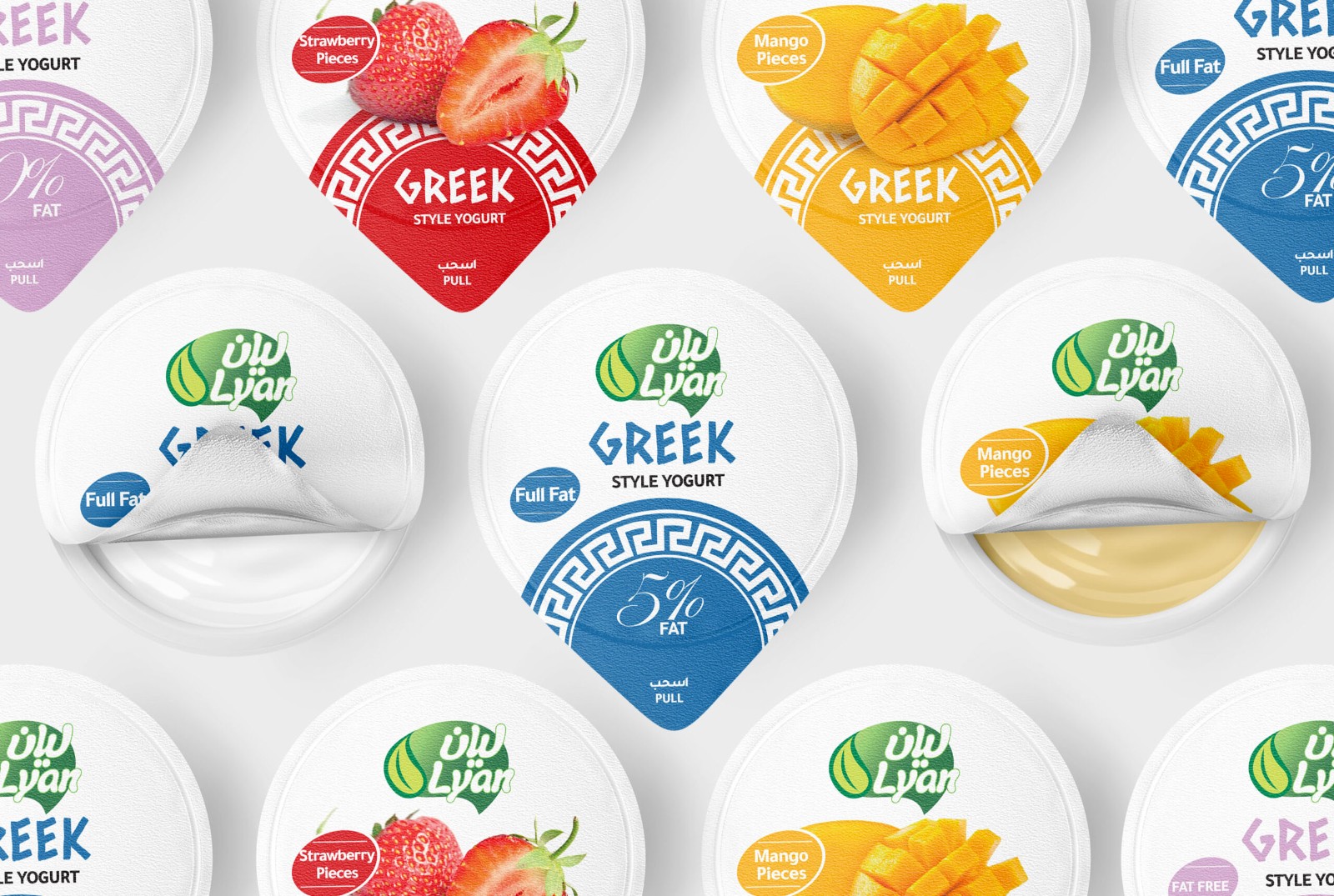 Lyan Dairy酸奶包裝設(shè)計,Lyan Dairy 是一條現(xiàn)代化的卡塔爾生產(chǎn)線,專門生產(chǎn)高品質(zhì)和當?shù)靥厣娜橹破泛凸a(chǎn)品,例如:酸奶、拉班、希臘酸奶、牛奶和果汁,從而滿足消費者的口味。