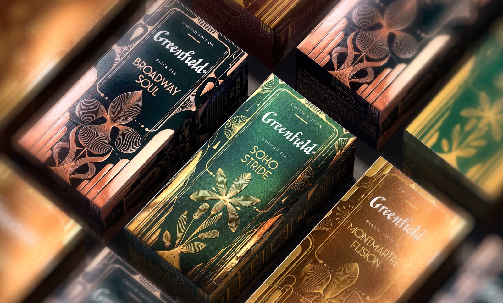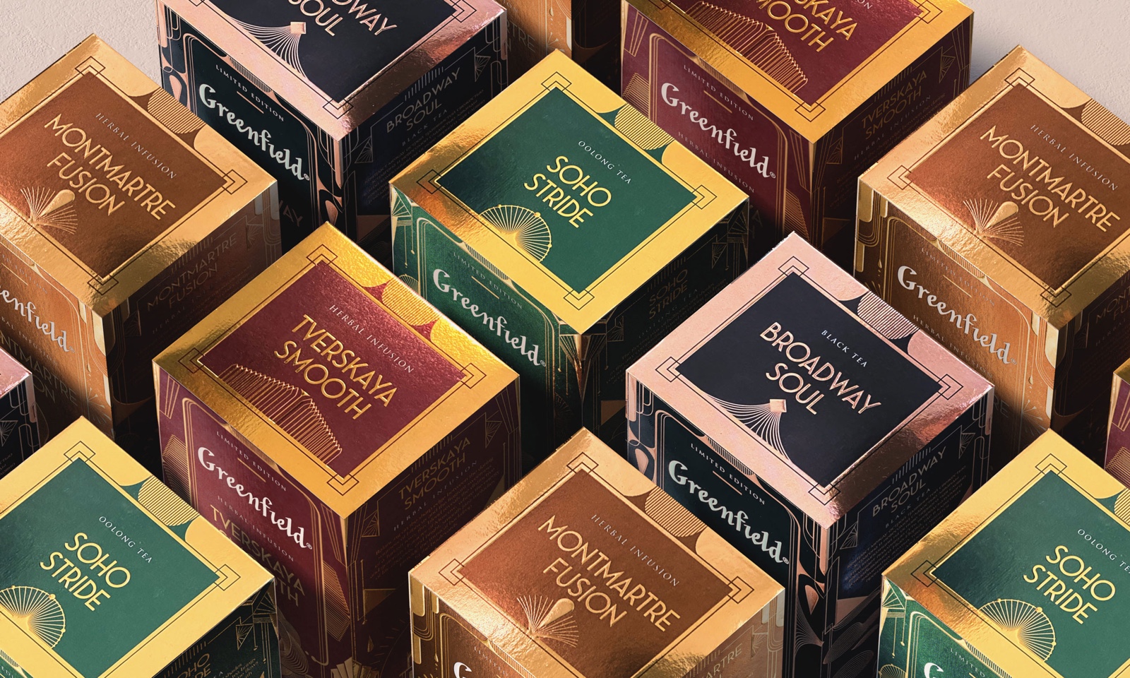 每年,我們都會(huì)推出一款新的限量茶系列,其包裝設(shè)計(jì)獨(dú)特,口味獨(dú)特。Greenfield Jazz系列致力于爵士樂(lè)的偉大時(shí)代。每個(gè)包裹都有自己的故事。我們將各種風(fēng)格的圖像與城鎮(zhèn)的建筑風(fēng)格相結(jié)合,而城鎮(zhèn)正是這些音樂(lè)趨勢(shì)的創(chuàng)始人。靈感來(lái)自裝飾藝術(shù)美學(xué)和爵士樂(lè)的杰出范例。