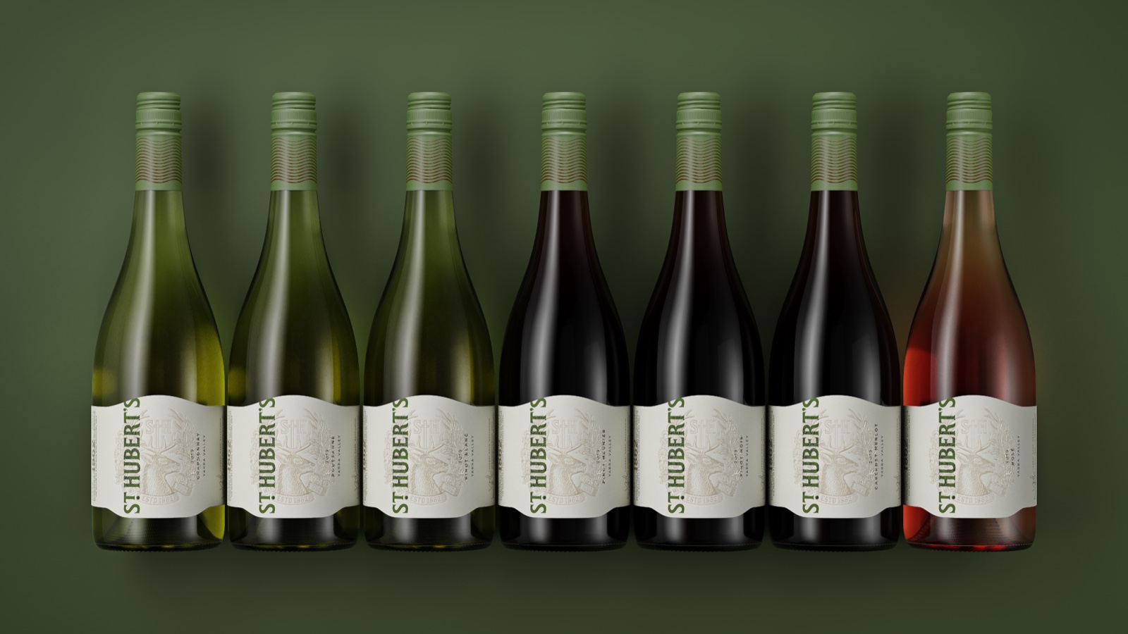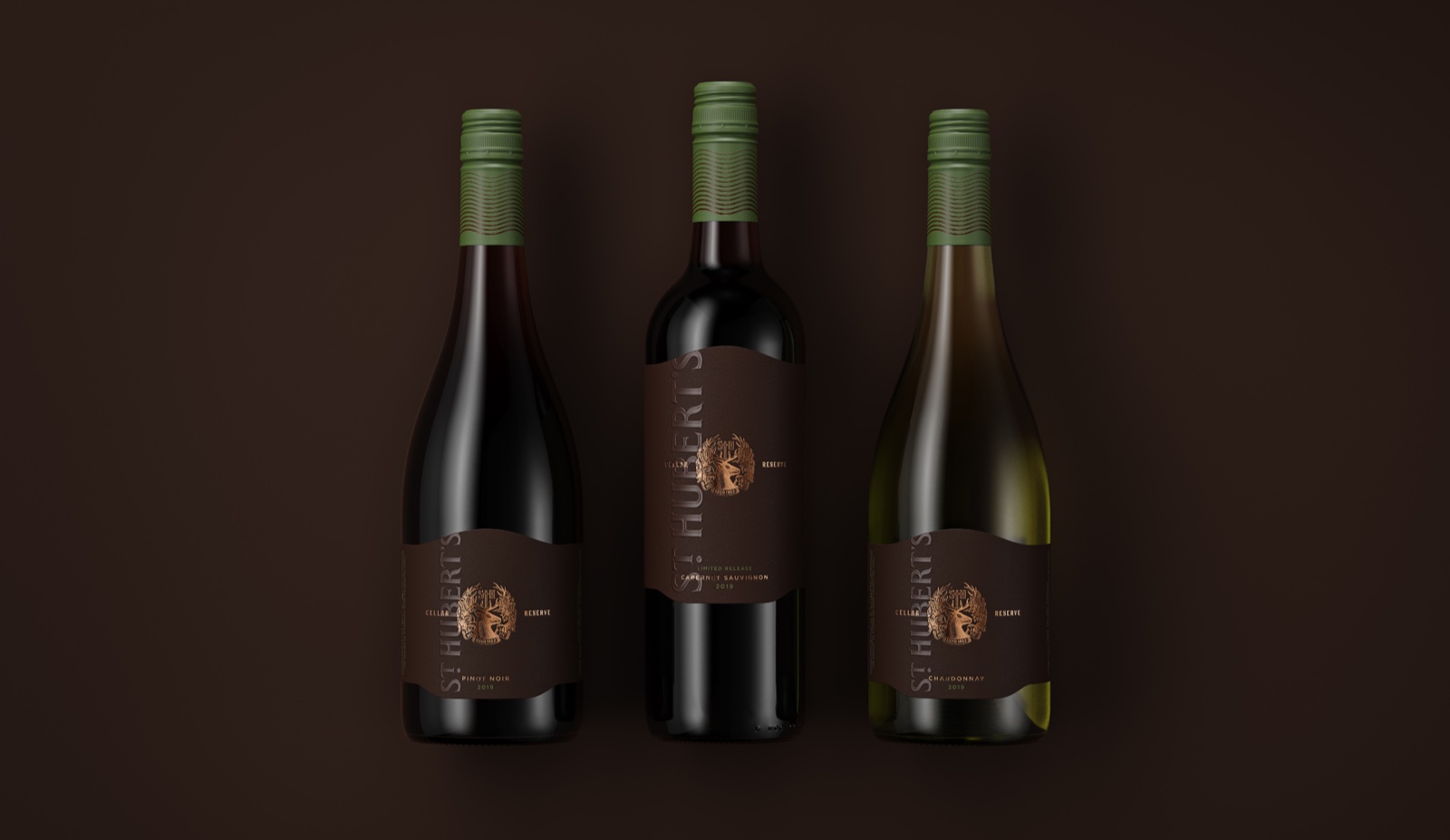 “該標(biāo)簽的靈感來源于新酒窖門的建筑線條,有機(jī)地矗立在葡萄園景觀之上。為了讓它展望未來,新的酒冠被郁郁蔥蔥的本地動(dòng)植物所包圍。一個(gè)完整的花押字在牡鹿頭上方同時(shí)作為十字架,參考了圣休伯特的《狩獵》,這是一個(gè)接近釀酒廠創(chuàng)始人休伯特·德·C的故事阿斯特拉。Boldinc創(chuàng)意總監(jiān)史蒂夫·史密斯(SteveSmith)解釋道:“這個(gè)文字標(biāo)記的靈感來自于圣休伯特(St Hubert)葡萄酒原始標(biāo)簽的維多利亞式排版?!?。