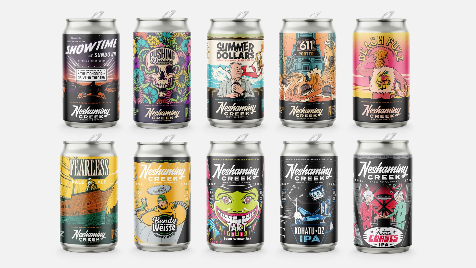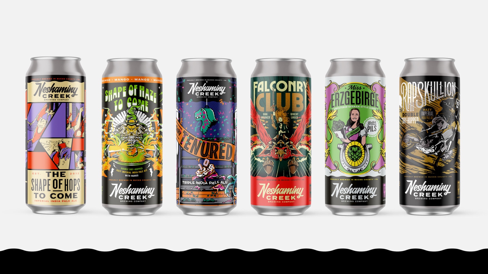 10 years is a long time. The Neshaminy Creek Brewing Company re-brand was going to take a lot of research, insights, strategy and last of all – damn good design and creativity. The previous brand leaned on a mix of Bucks County, Pennsylvania cultural references stacked on top of the ownerships deep roots in the punk rock scenes of the Northeast. When we were tasked with the re-fresh, we knew we had to pay homage to where they had been but bring them into the future at the same time. Make it a little more polished, a little more mature – but don’t let em’ forget where you come from. We developed a vastly responsive brand package and graphics kit with an updated main script word mark and a plethora of badges, pieces and parts to keep the core brand main stage.