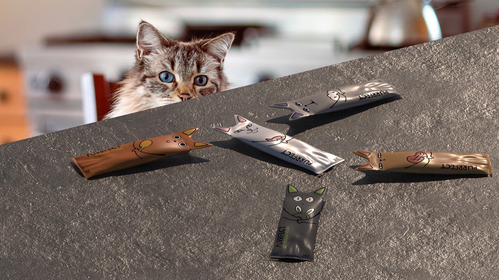 如果你的寵物喜歡在晚上叫醒你并索要食物,用生態(tài)的方式表達(dá)你的情緒,撕掉它的耳朵來(lái)處理一包食物。PURRFECT貓糧包裝部分,使用方便,容量標(biāo)準(zhǔn)。一次性使用解決了存儲(chǔ)不方便的問(wèn)題。你可以在有趣的插畫(huà)設(shè)計(jì)中認(rèn)出你的寵物。