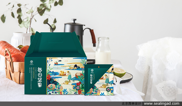 通過堅果與卡通動植物場景結合,給包裝創(chuàng)意營造生態(tài)自然輕松感