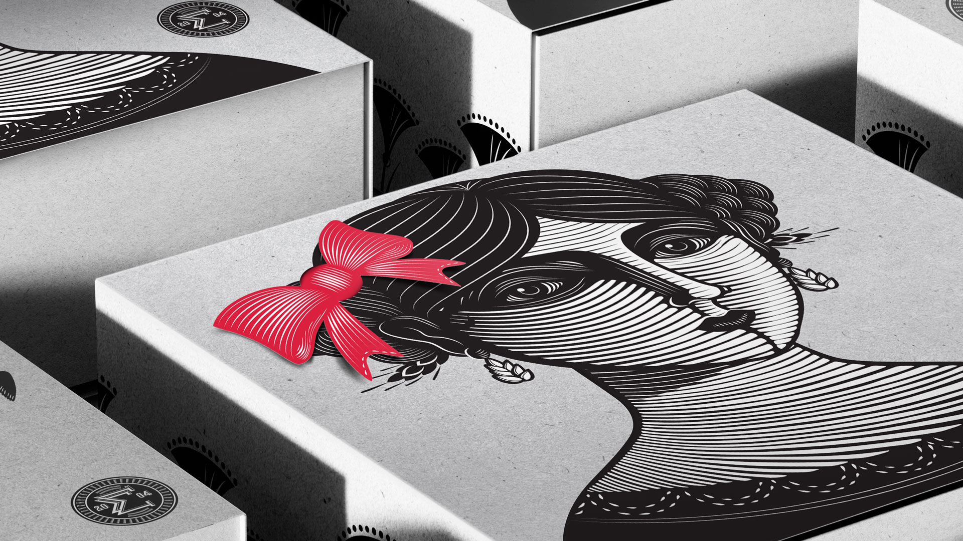 所有使用的蝴蝶結(jié)都是由回收材料制成的。蝴蝶結(jié)是從紙屑,從原始包裝時(shí),削減生產(chǎn)。我們沒有把剩下的文件扔掉,而是把它們作為最后的點(diǎn)睛之筆再利用。包裝只使用黑色墨水和蝴蝶結(jié)紅色pantone顏色,從而減少了墨水的使用。