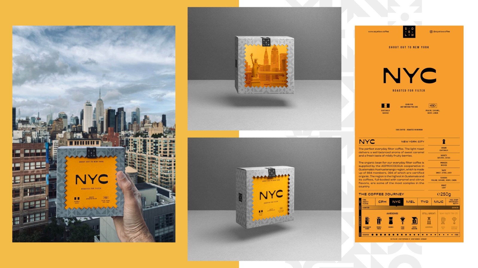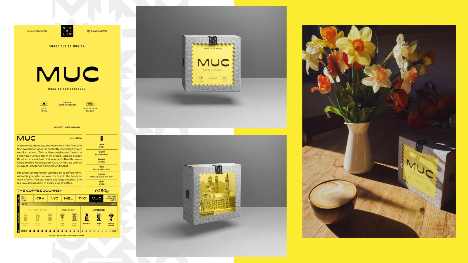 S/O YELLOW 是一家來自慕尼黑的特色咖啡烘焙公司,代表具有特殊口味的優(yōu)質(zhì)咖啡豆。通過發(fā)明“咖啡之旅”,使用不同的城市名稱,在購買時(shí)提供方向和決策支持。烘焙代表了在大都市準(zhǔn)備和飲用咖啡的獨(dú)特方式。