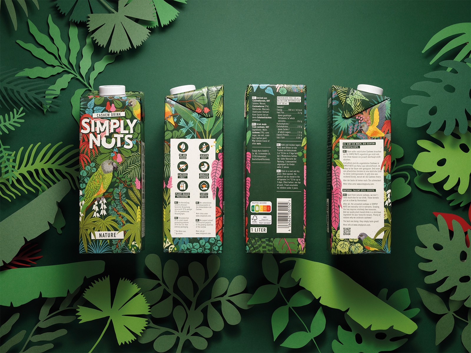 市場上充斥著提供牛奶替代品的品牌。如果一家初創(chuàng)企業(yè)不脫穎而出,它就很難有所作為。 Simply Nuts 是腰果奶品牌,擁有“德國腰果比例最高”。Simply Design 與 Studio Oeding 接洽,“根據(jù)深入的市場和設(shè)計分析,在牛奶替代品領(lǐng)域開發(fā)一個新的消費品牌?!?/em>腰果飲料產(chǎn)品系列由三個品種組成,于去年秋季率先在德國快速消費品市場推出。包裝設(shè)計應(yīng)將品牌和產(chǎn)品概念形象化,并在市場和立場上形成明顯的差異化出去。”
