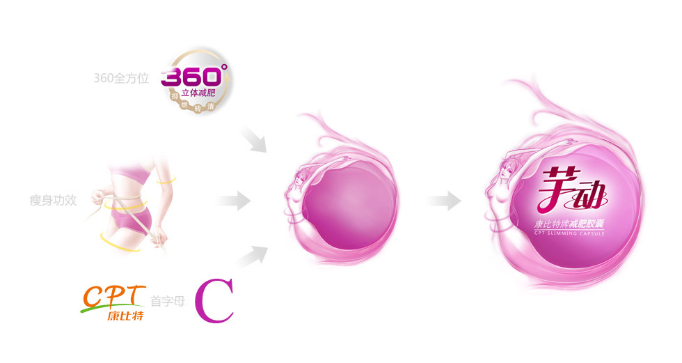 項目背景:康比特芊動產(chǎn)品的研發(fā)是直面當前“減肥10大因擾”的,在全國首創(chuàng)360度“抑-燃-轉(zhuǎn)-清”全方位立體減脂概念。要求西林設計為產(chǎn)品量身創(chuàng)作產(chǎn)品包裝,力求高檔、時尚,適度體現(xiàn)減肥功效。