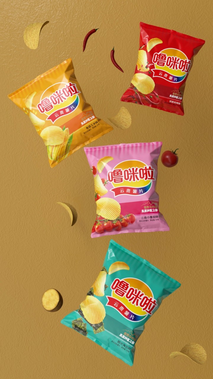 口號“云貴薯片,中國味道”更是擲地有聲,它將嚕咪啦的品牌定位與中國傳統(tǒng)文化緊密結(jié)合,傳遞出嚕咪啦對品質(zhì)的追求和對中國美食文化的傳承與弘揚。 同時,為了更好地實現(xiàn)品牌戰(zhàn)略定位,嚕咪啦對 logo 進行了升級。新的 logo 更加簡潔大氣,富有現(xiàn)代感和藝術(shù)感,能夠更好地傳達嚕咪啦的品牌形象和價值觀。經(jīng)典薯片系列產(chǎn)品包裝也煥然一新,采用了更加時尚、環(huán)保的設計理念,既突出了產(chǎn)品的特色和品質(zhì),又符合現(xiàn)代消費者的審美需求。更有全新黃金薯片系列產(chǎn)品重磅推出,這款產(chǎn)品以其獨特的口感和高品質(zhì)的原料,成為了發(fā)布會的一大亮點,吸引了眾多嘉賓的關(guān)注和喜愛。