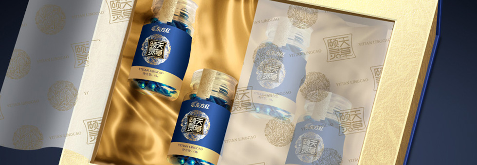 項(xiàng)目背景:深藍(lán)色背景深沉、高貴,賦予頤天靈草神秘氣質(zhì)。金色的封條與底飾更彰顯奢華貴氣。手繪中式團(tuán)型圖案,點(diǎn)綴出產(chǎn)品的古典情懷。