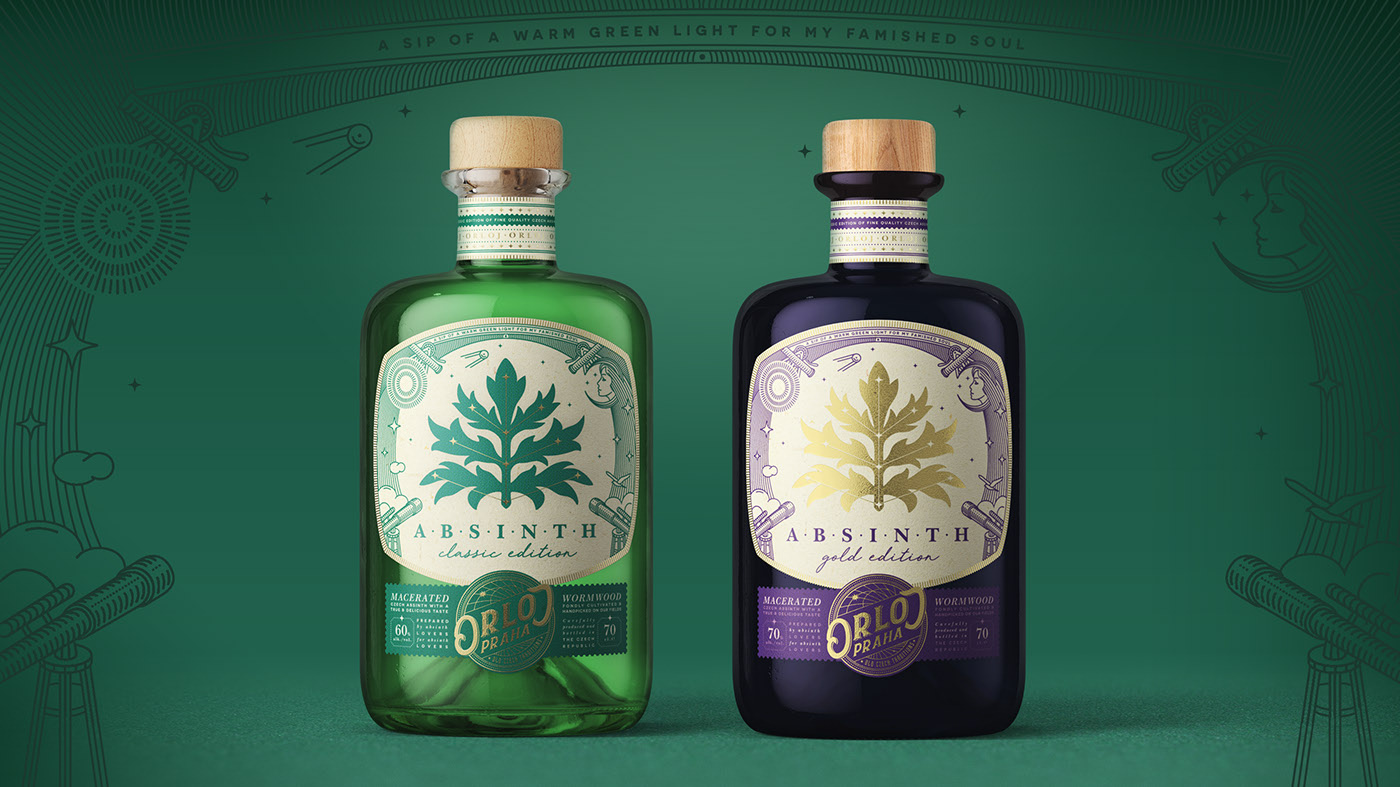 任務(wù):為傳統(tǒng)的捷克苦艾酒開發(fā)標(biāo)簽設(shè)計(jì)。捷克共和國是一個(gè)眾所周知的苦艾生產(chǎn)國,這不是什么秘密。每年都有很多游客來這里品嘗各種神秘飲料。布拉格,捷克共和國的首都,以一種中世紀(jì)的天文鐘而聞名于世,名為Orloj。這只鐘于1410年首次安裝,使它成為世界上第三座最古老的天文鐘.去年,兩家酒精生產(chǎn)商決定合作制作一款新的高質(zhì)量版的苦艾酒。他們采用了一種傳統(tǒng)的捷克苦艾汁配方,并將其與首都的象征相結(jié)合,并出現(xiàn)了新的天文苦艾酒,名為“Orloj”。它決定制作兩種版本的飲料:經(jīng)典(浸漬)和金色(蒸餾)一。我的任務(wù)是創(chuàng)建一個(gè)產(chǎn)品的標(biāo)志,標(biāo)簽設(shè)計(jì)和產(chǎn)品的基本視覺標(biāo)識(shí)。