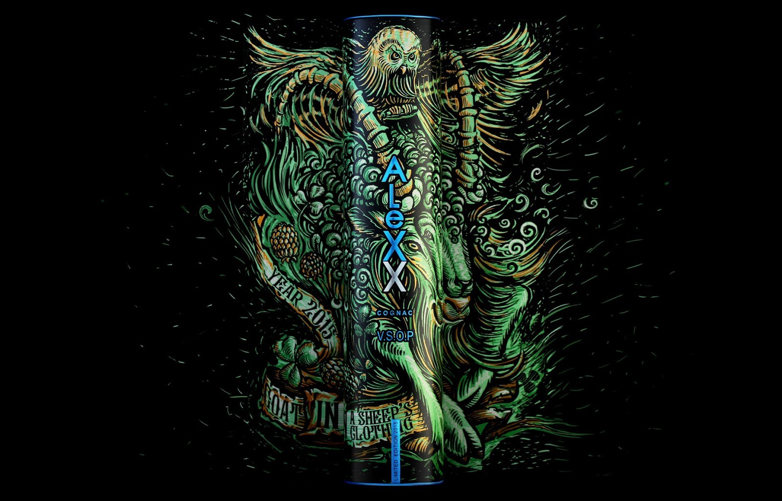 AleXX山羊在山羊的衣服是著名的烏克蘭白蘭地的限量版包裝設(shè)計(jì),致力于中國日歷上的2015年綠色山羊年。
