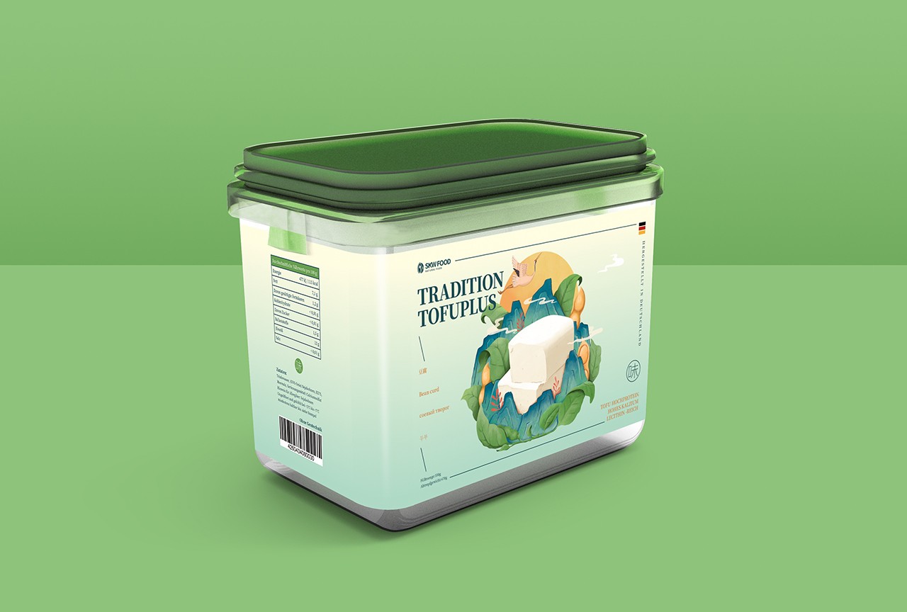豆腐包裝設(shè)計采用中國傳統(tǒng)水墨畫風(fēng)格,融合了許多傳統(tǒng)吉祥元素,是傳統(tǒng)文化與現(xiàn)代設(shè)計的很好嘗試。國潮風(fēng)豆腐包裝設(shè)計。