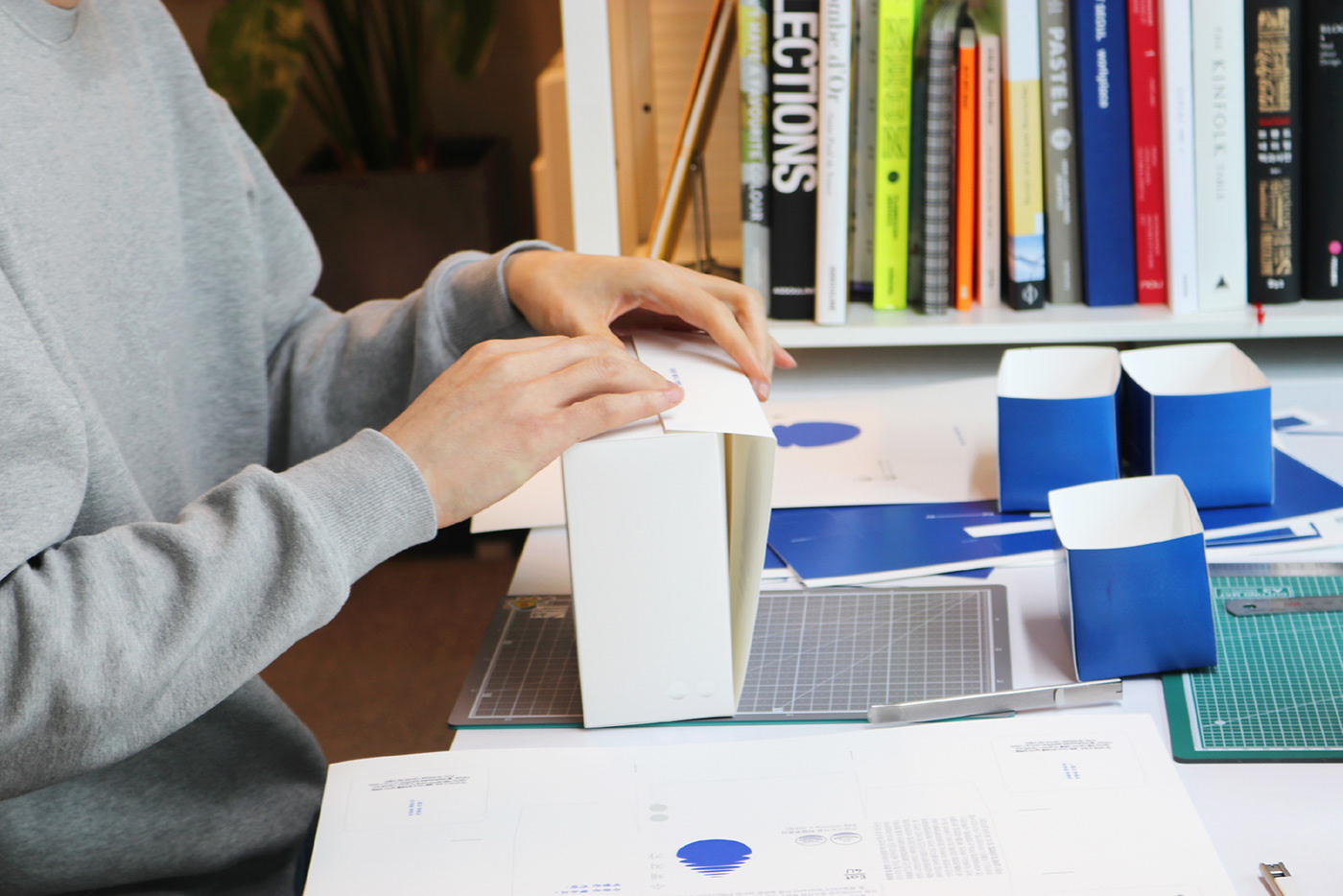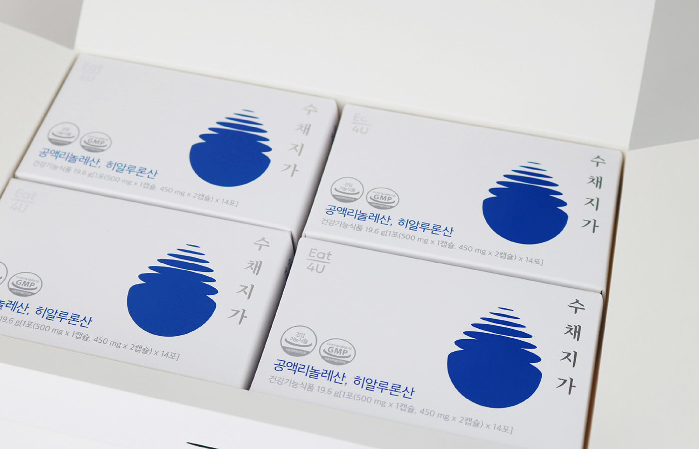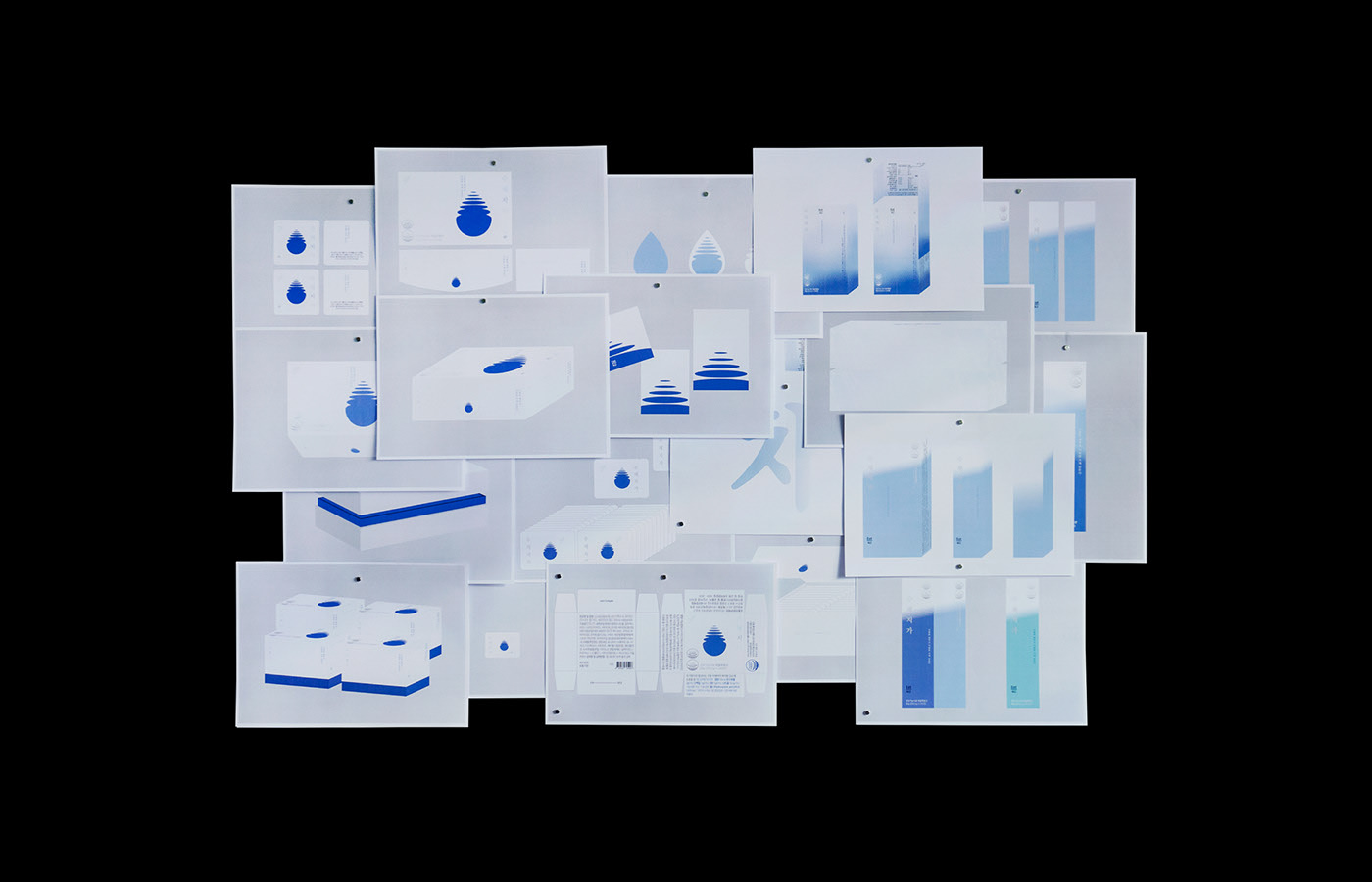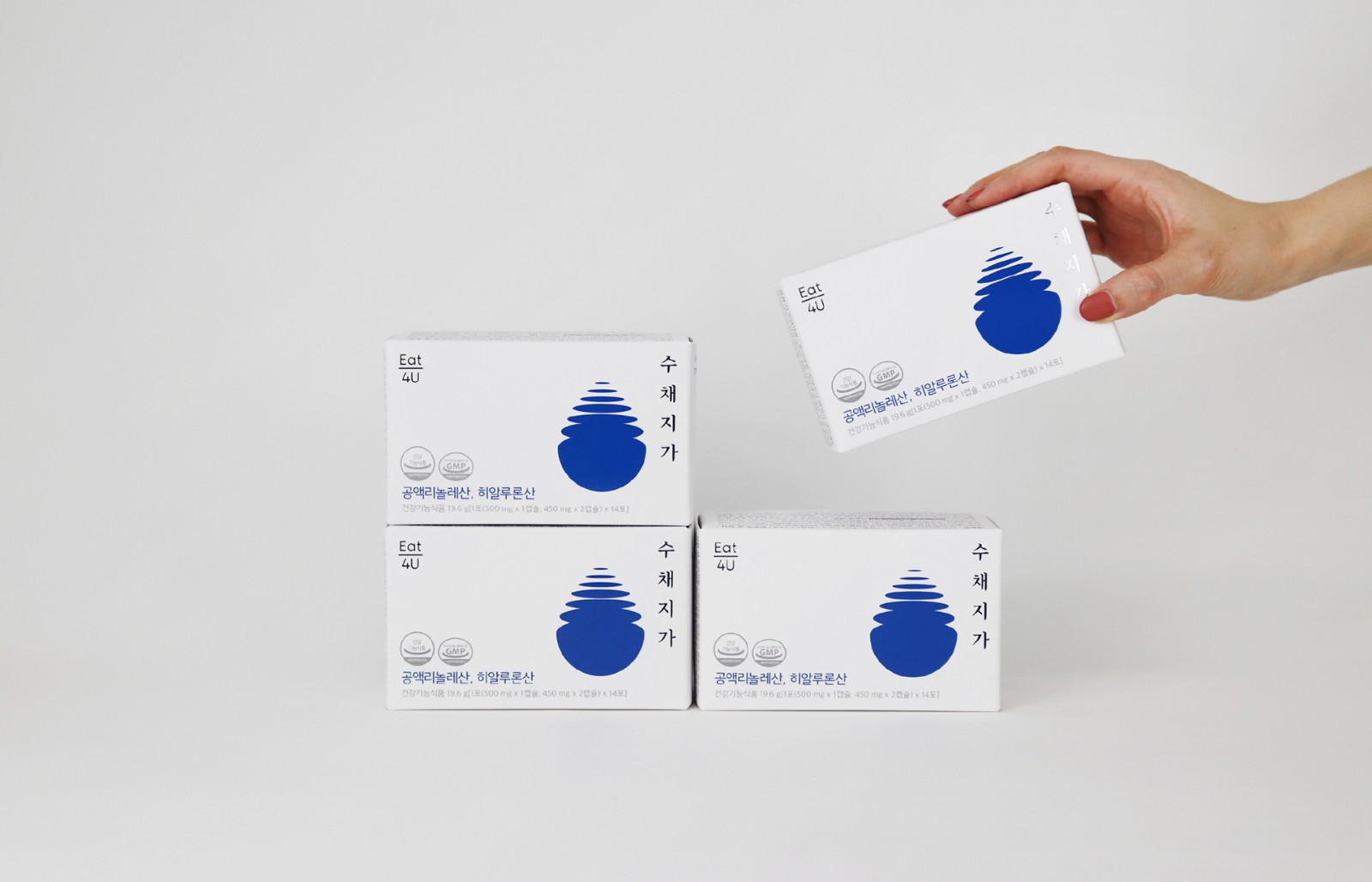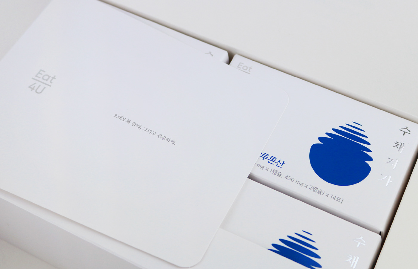 我們設(shè)計(jì)了'????'的包裝,這是一種來自Eat4U的新型健康功能食品,eat4u是一個(gè)致力于健康生活的品牌。'????',字面意思是“充滿水分,釋放脂肪”,是一種膳食補(bǔ)充劑,可以解決節(jié)食者每天攝入水分的困難。最重要的關(guān)鍵詞是“充滿水分”,我們打算通過包裝的圖形設(shè)計(jì)來視覺傳達(dá)充滿水分。由于“水分”是一個(gè)物理上比水小的概念,我們選擇使用水滴作為被填充的象征性表示。我們試圖通過一個(gè)完整的符號來傳達(dá)一個(gè)產(chǎn)品概念。