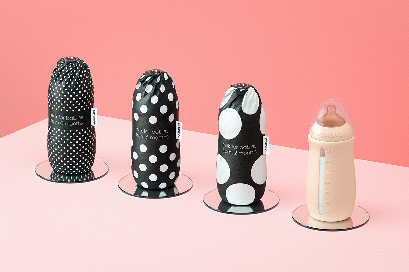 Mamoloko是為年輕現(xiàn)代女性設計的牛奶配方。該包裝看起來像是時尚的配飾,是年輕母親形象的補充。黑白伽瑪與一頭母牛有關。這樣的包裝將在貨架上的其他乳制品中脫穎而出,并且,最重要的是,母親們將很高興看到這種產品。
