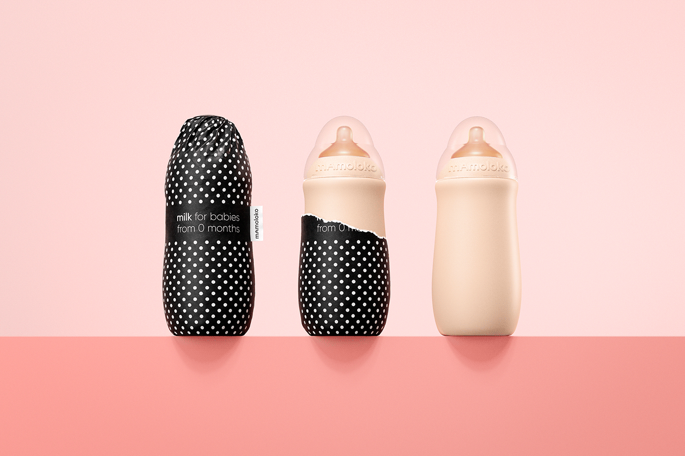 品牌系列包括三種產品。它們的成分不同,適用于不同的年齡:從出生,六個月到一年。該產品的優(yōu)點是可以瓶裝出售,可以重復使用,有助于改善環(huán)境。該瓶子根據圖紙設計。啞光米色表面保護著瓶子內的物品。瓶子有一個刻度尺和一個窗口,通過該窗口可以看到產品。視覺上的想法是,用于喂養(yǎng)的瓶子象征著女性的乳房,而包裝紙則象征著衣物。豌豆圖案被用作基礎,是女性衣柜中最知名的圖案。豌豆是產品的另一特性:豌豆的大小取決于嬰兒的年齡。