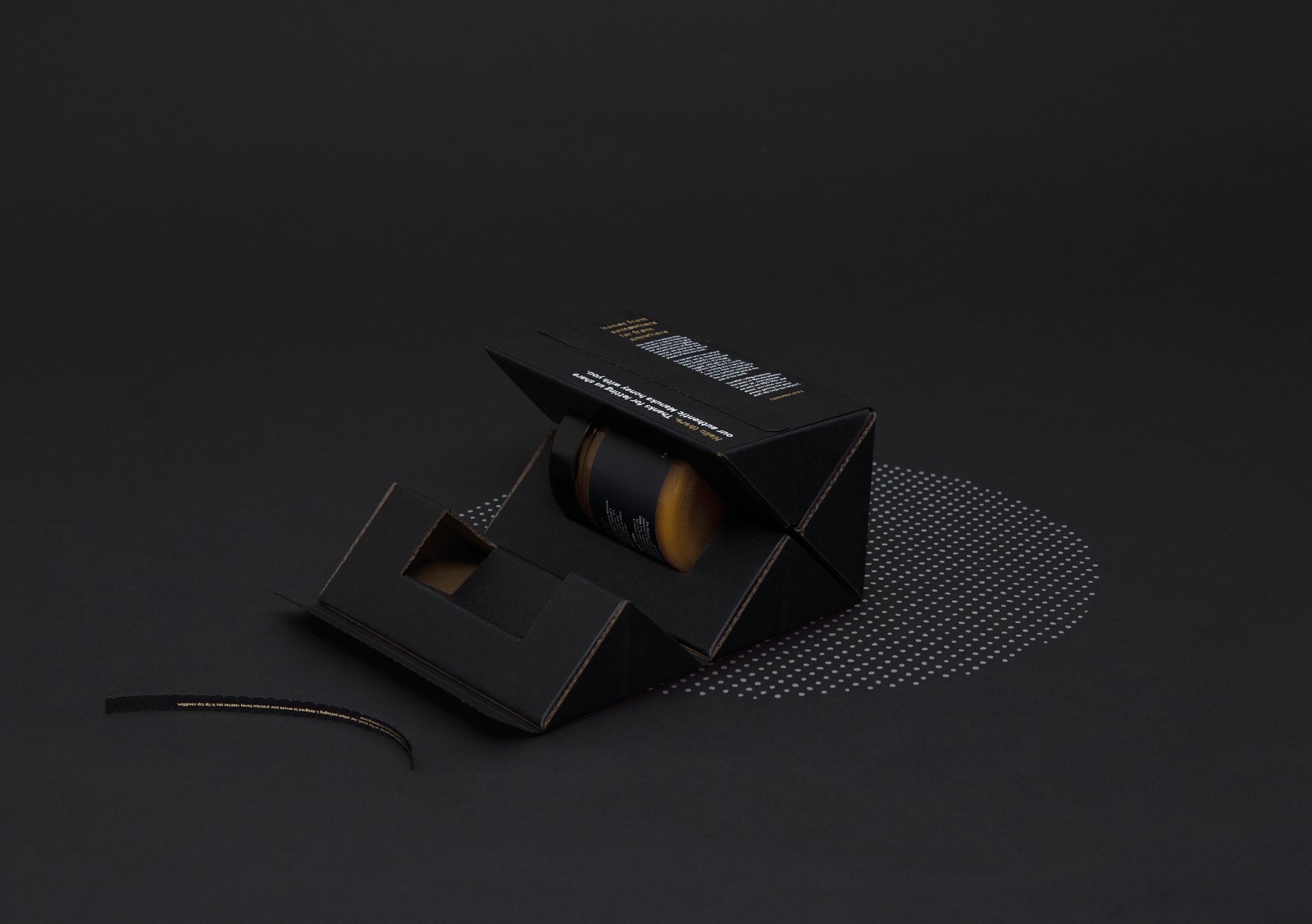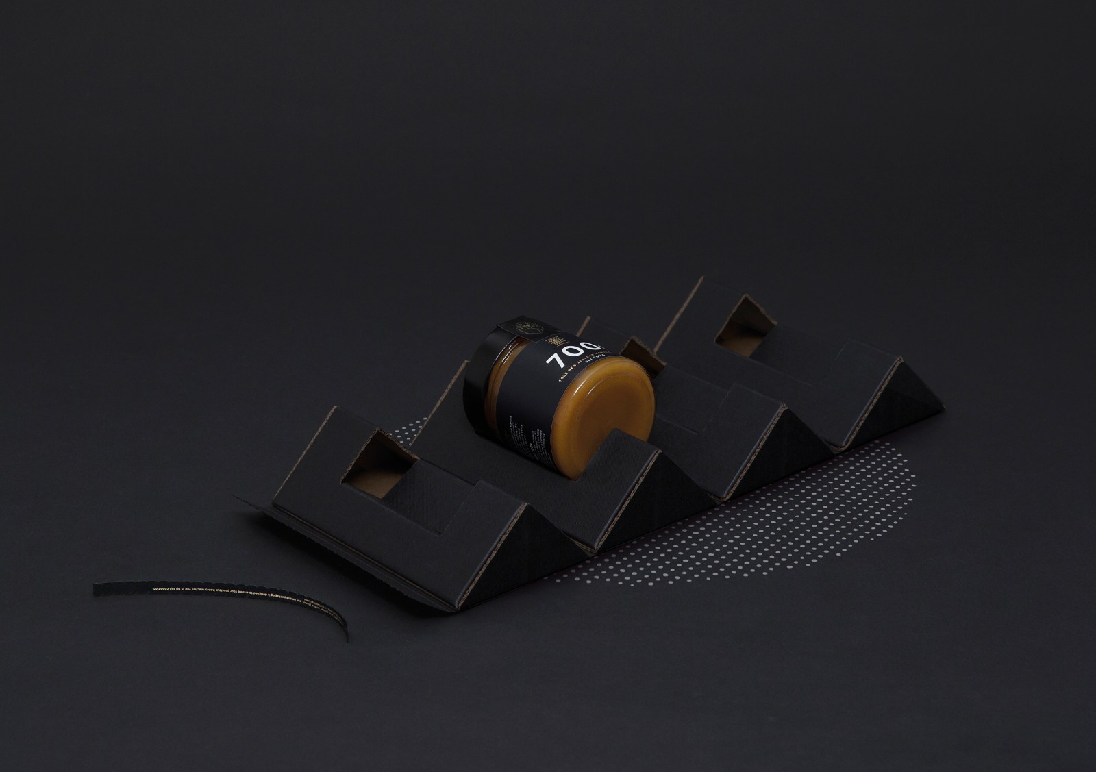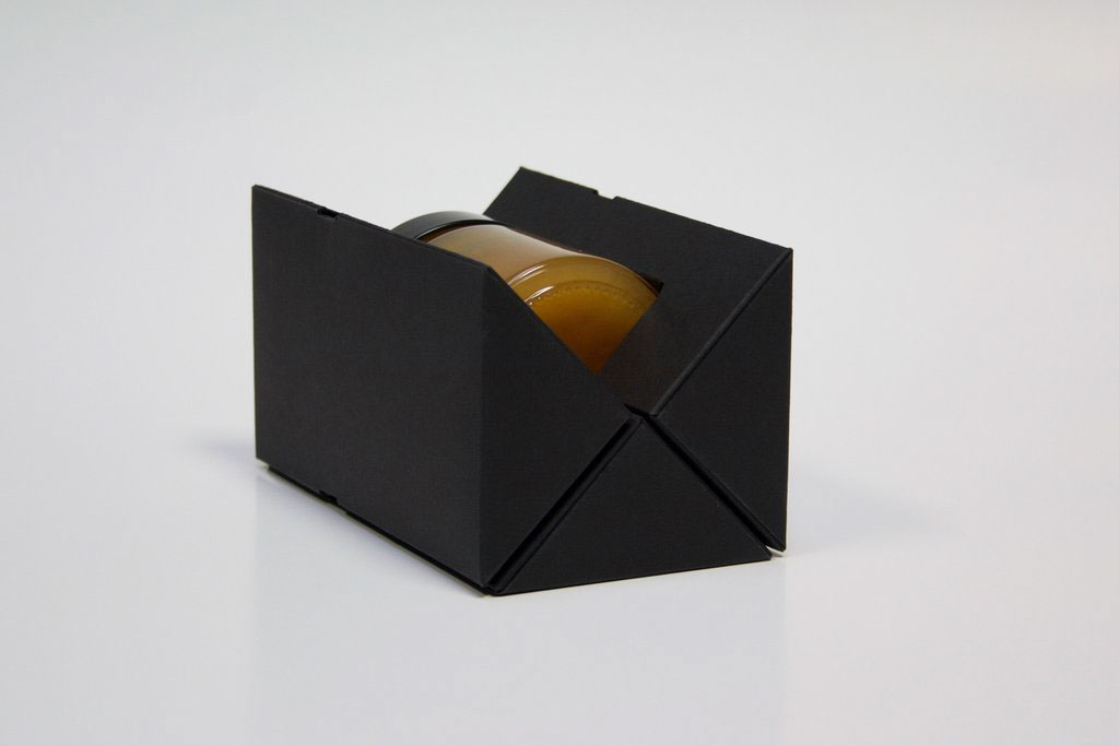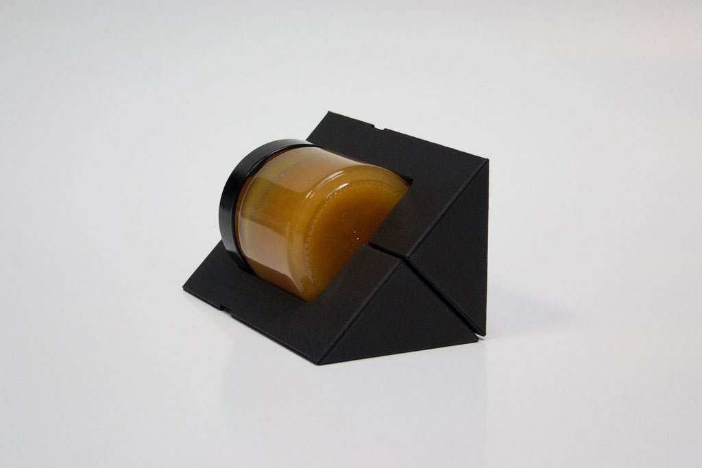 麥盧卡蜂蜜是一種蜂蜜,在新西蘭和澳大利亞新南威爾士北部的山坡、沿海地區(qū)、森林邊緣,生有一種叫做麥盧卡[也稱(chēng)曼努卡](manuka)的紅茶樹(shù)。每逢初夏,它盛開(kāi)的花朵會(huì)引得成群的蜜蜂來(lái)蜜源采集花蜜,以釀造獨(dú)具特色的麥盧卡蜂蜜。現(xiàn)在分享的這一款麥盧卡蜂蜜TRUE MANUKA HONEY的包裝設(shè)計(jì),因?yàn)槭请娚啼N(xiāo)售產(chǎn)品,而且又是個(gè)玻璃瓶,對(duì)防撞要求比較高。設(shè)計(jì)形式區(qū)別于普通的蜂蜜設(shè)計(jì)形式,設(shè)計(jì)師巧妙通過(guò)瓦楞紙結(jié)構(gòu),做成一個(gè)三角度形狀,用四個(gè)三角形組成一個(gè)正方形的包裝,在里面通過(guò)模切做成一個(gè)緩沖區(qū),能夠很好的保護(hù)蜂蜜瓶。用黑色凸顯品質(zhì),黑白對(duì)比設(shè)計(jì)更加醒目,畫(huà)面設(shè)計(jì)非常簡(jiǎn)潔,給人感覺(jué)高端大氣又環(huán)保。給人以厚重可信賴的高端感覺(jué)。配色產(chǎn)品“蜂蜜”本身的黃金色,這種色彩上的醒目對(duì)比很容易凸顯蜂蜜作為自然甜品的美味,而引發(fā)食欲,進(jìn)而引發(fā)購(gòu)買(mǎi)行為。