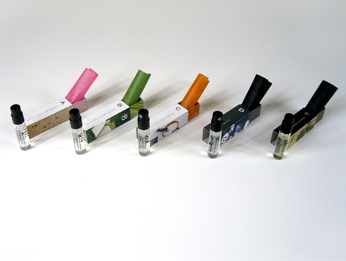 Ineke Deluxe Sample Collection通過高檔抽屜盒包裝展示了Ineke香水的微型版本。在每個(gè)采樣器中,小瓶都用柔軟的薄紙包裹著,并裝在(抽拉盒)火柴盒中。