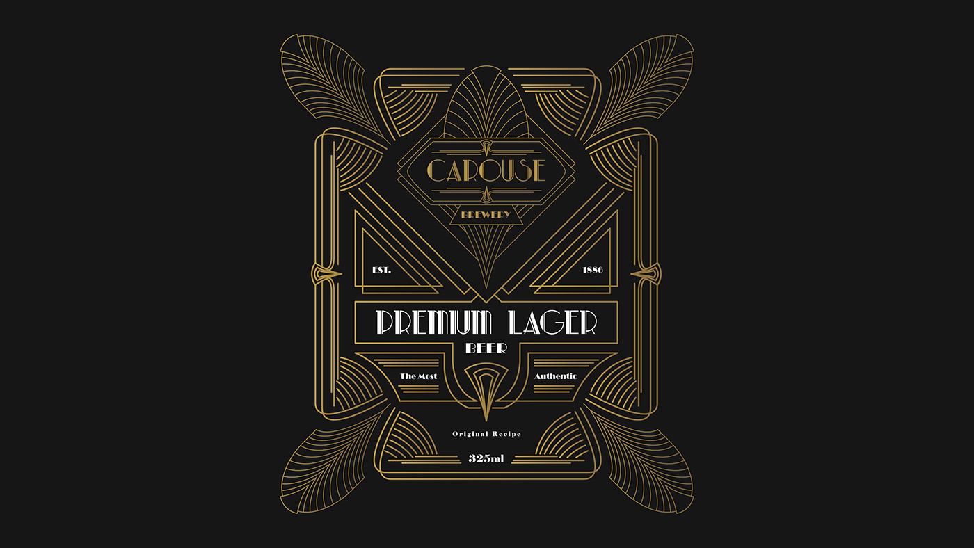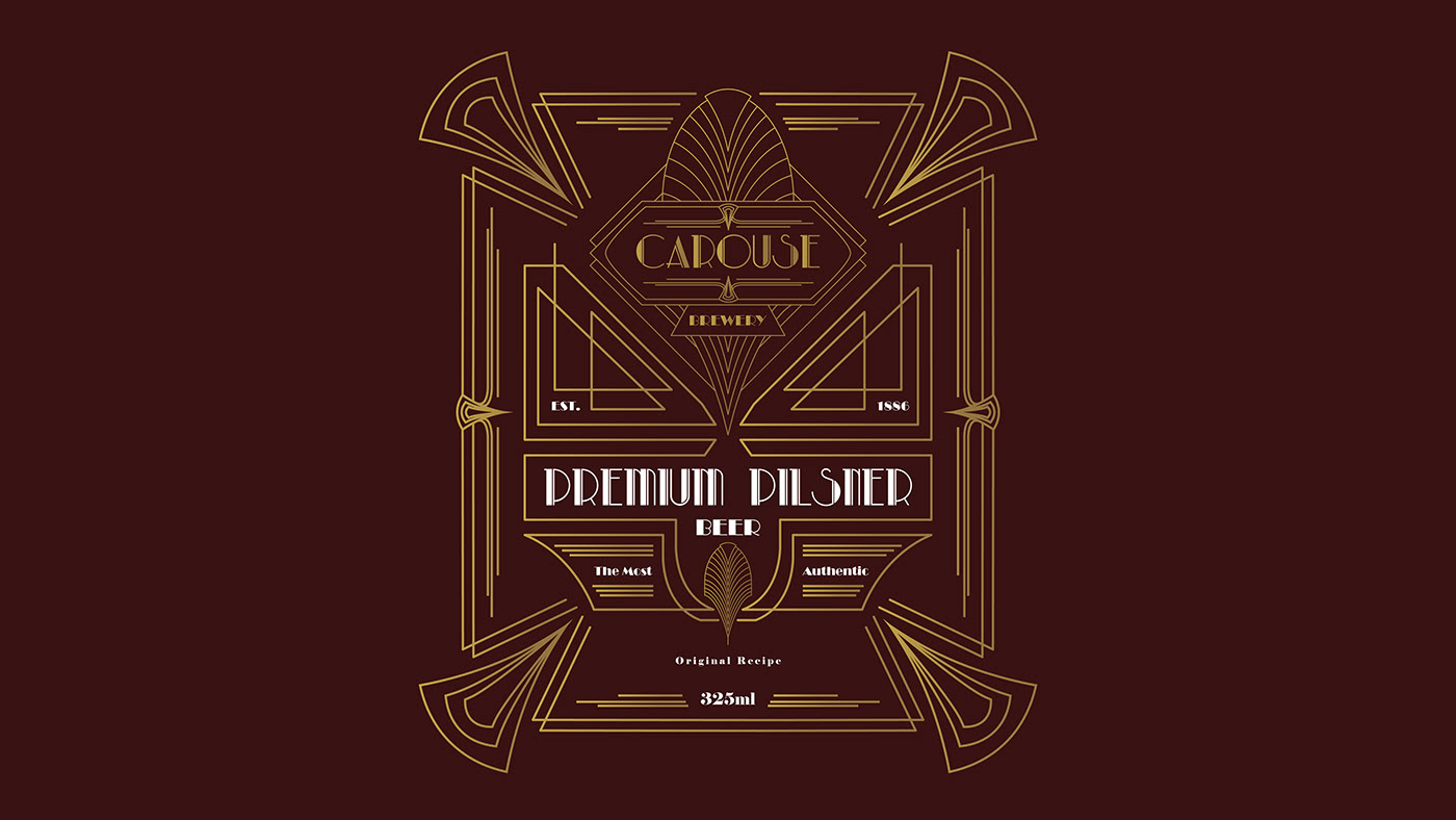 卡羅勒斯啤酒廠是一家位于美國(guó)密蘇里州的啤酒廠。裝飾藝術(shù)被選為他們身份和標(biāo)簽設(shè)計(jì)的主題和方向。裝飾藝術(shù)風(fēng)格的裝飾設(shè)計(jì)帶來(lái)了優(yōu)質(zhì)和復(fù)雜的印象,展示了他們釀造的優(yōu)質(zhì)啤酒。