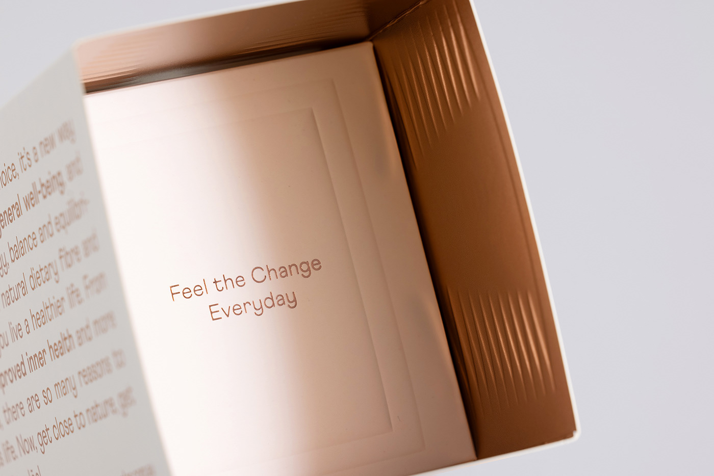 如何表達健康與美麗?這種包裝設計的整體輕盈清新的外觀回答了這個問題,通過包裝上的壓花技術將盒子內(nèi)的香包形象化,圖案以不同的角度出現(xiàn)/消失,這代表了你將在短短30天內(nèi)經(jīng)歷的變化。