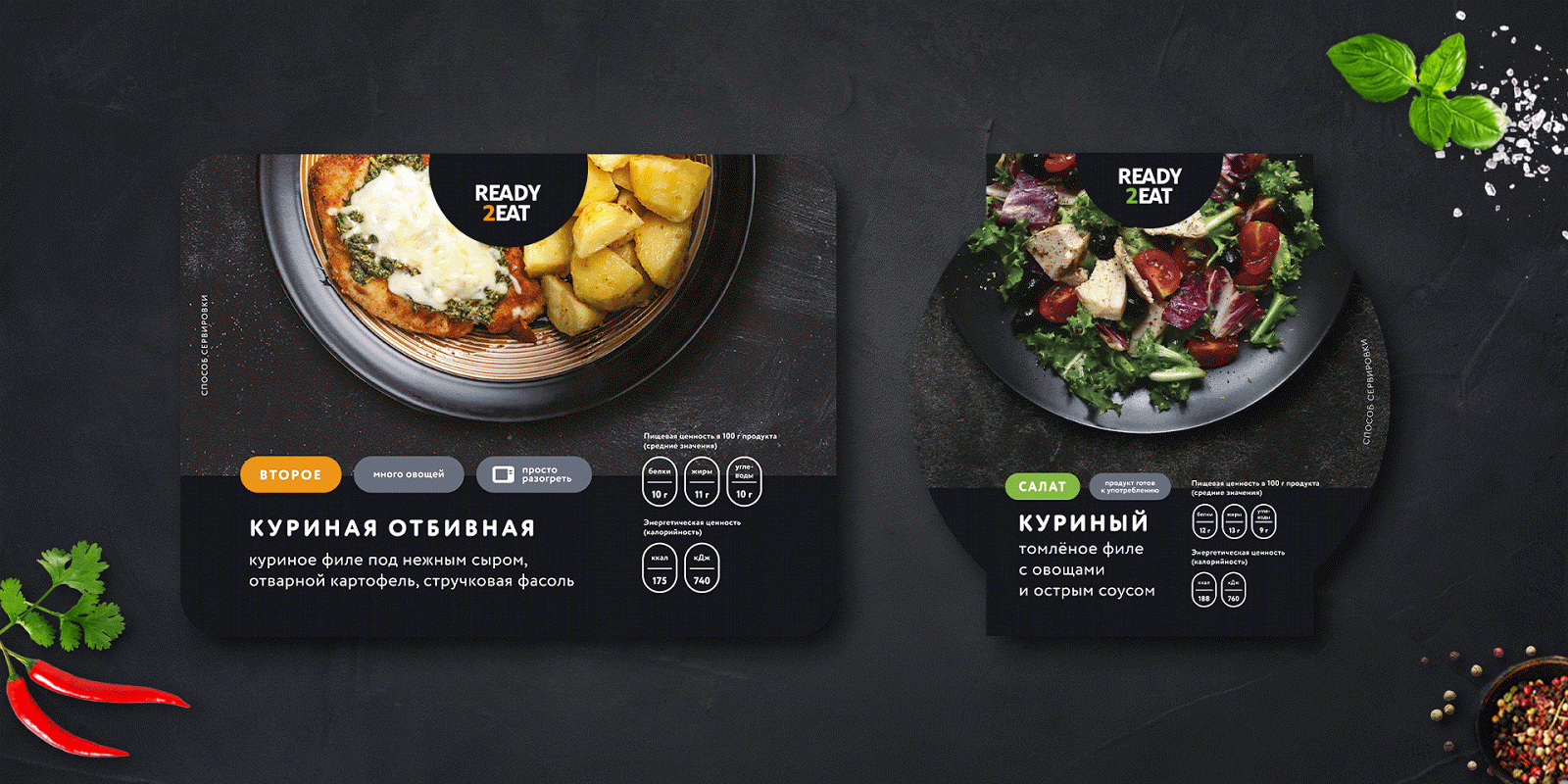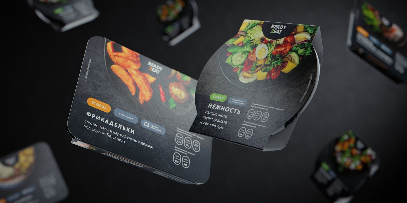 在開發(fā)設計時,要考慮幾個要點。首先,該生產(chǎn)線適用于大量產(chǎn)品。計劃一段時間后,將包括多達一百種菜肴和飲料。用于此類品牌的企業(yè)標識系統(tǒng)應考慮所有擴展產(chǎn)品范圍的選擇。其次,在購買任何產(chǎn)品之前,客戶必須注意其包裝,感到食欲并想嘗試里面的東西。同時,整個READY2EAT系列都以密閉包裝出售-食物不可見。這意味著,設計應引起注意并激發(fā)食欲。