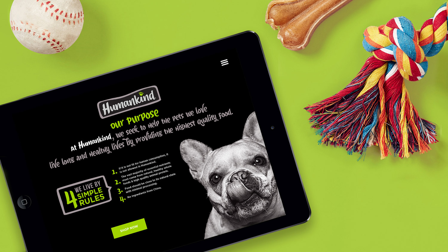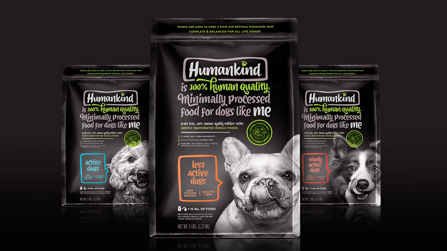 作為熱情的寵物父母,我們知道你喂你的寵物是什么直接關(guān)系到他們的長(zhǎng)期健康。我們只擁有新的品牌“人類(lèi)”,著手開(kāi)發(fā)一個(gè)品牌,該品牌將是唯一最重要的營(yíng)銷(xiāo)工具,用于這種超優(yōu)質(zhì)、人類(lèi)級(jí)寵物食品,專(zhuān)門(mén)通過(guò)獸醫(yī)辦公室和在線銷(xiāo)售。結(jié)果是一個(gè)有品質(zhì)的黑色啞光袋,吸引了黑白攝影,用狗的眼神說(shuō)話(huà)。