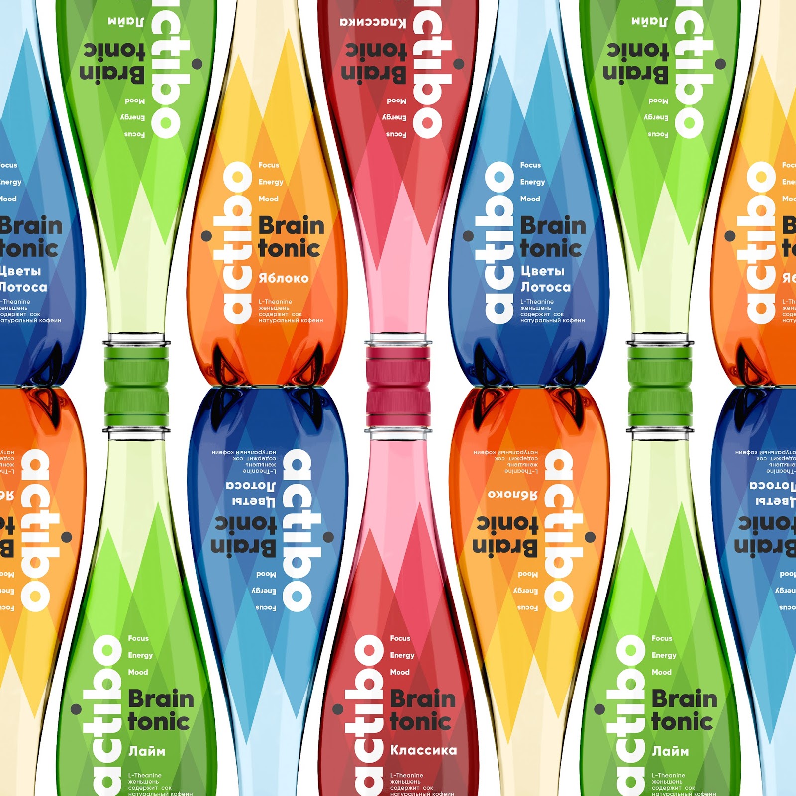 包裝設計的靈感來自大腦活動圖中反映的強度變化、波動和峰值。這個想法是建立在一個印刷品與重疊的三角形,創(chuàng)造了一套透明,與產(chǎn)品的顏色融合。這樣,設計與底部的產(chǎn)品智能地結合在一起,但讓它在瓶子頂部可見。