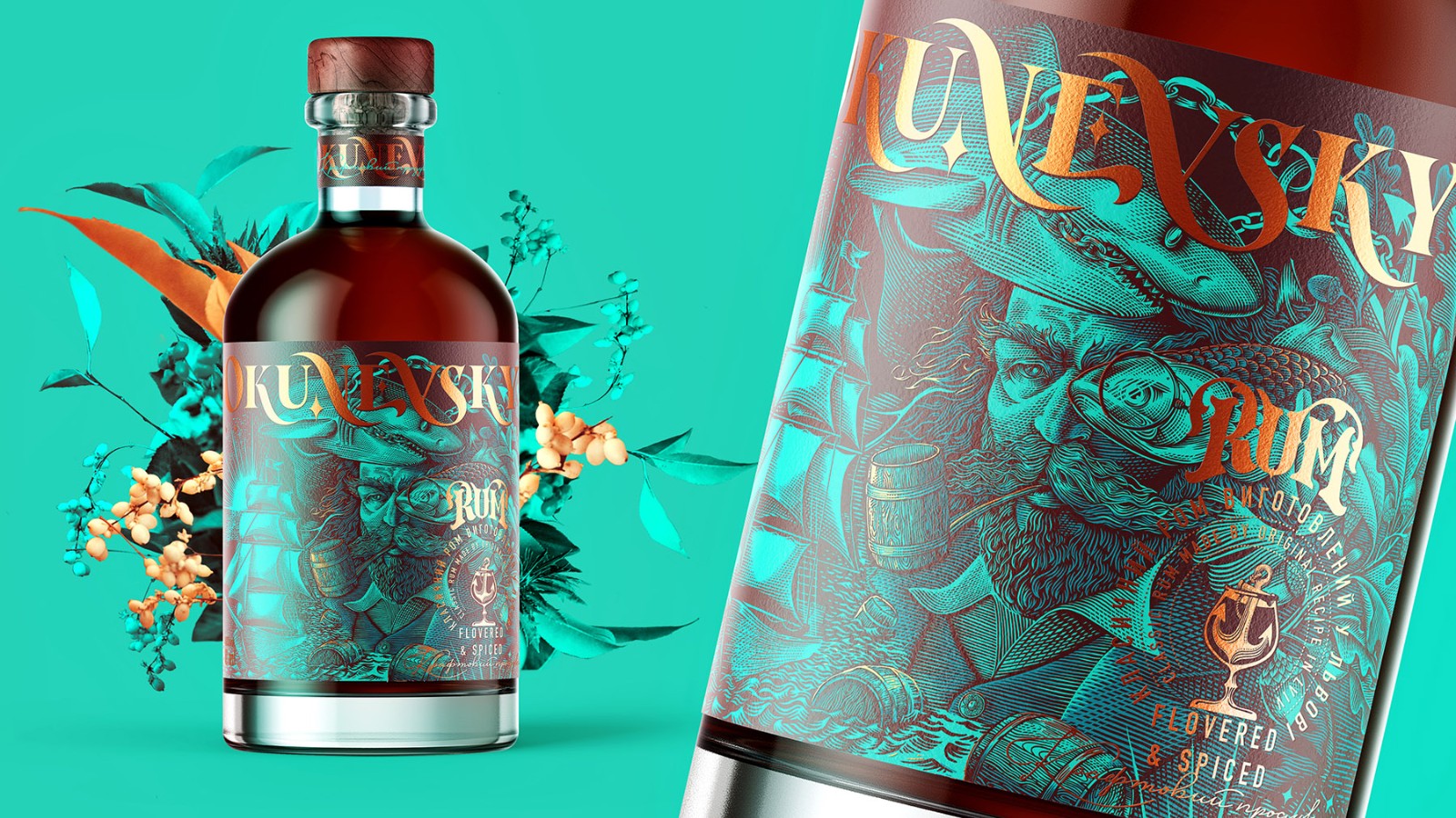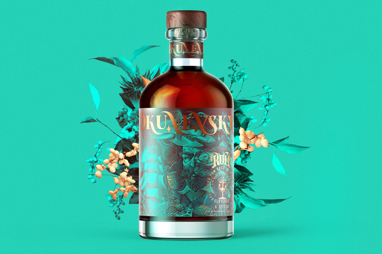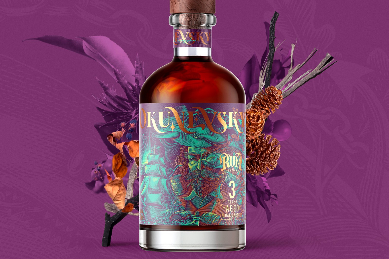 Okunevsky是在烏克蘭利沃夫制造的經(jīng)典朗姆酒的新品牌。這是完全手工制作的產(chǎn)品,分批生產(chǎn),非常注重產(chǎn)品質(zhì)量。該品牌以烏克蘭軍事人物雅羅斯拉夫·奧庫涅夫斯基(Yaroslav Okunevsky)的名字命名,該插畫有些夸張,充滿力量的航海氣氛,有些傳奇般的色彩引起了人們的注意,并在品牌周圍產(chǎn)生了些許神秘感。