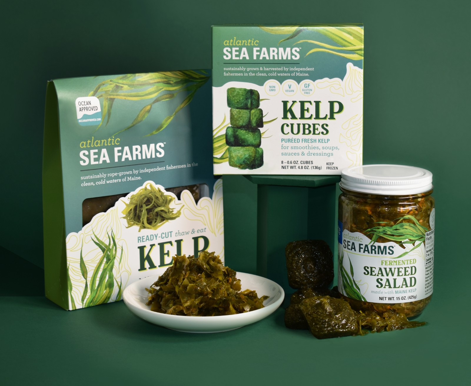 緬因州的品牌煉金術(shù)師Pulp + Wire強調(diào)了簡單而又營養(yǎng)豐富的海帶,與Atlantic Sea Farms精心制作的包裝一起工作,以反映產(chǎn)品的質(zhì)量以及支持當(dāng)?shù)貪O民和海帶種植者的使命。Pulp + Wire建立了統(tǒng)一的包裝線,其中包括罐裝產(chǎn)品和盒裝冷凍海帶。包裝的特征是黃色,綠色和藍色的有機色調(diào),與產(chǎn)品和海帶生長的原始緬因州水域的顏色相同。所有產(chǎn)品的包裝都使消費者能夠看到里面裝的真正海帶的美麗陰影,對于習(xí)慣于將染色和加工的海藻沙拉作為規(guī)范的人群而言,該產(chǎn)品完全透明。錨定在緬因州的大西洋海農(nóng)場通過給海龍蝦和漁民提供另一種通過海洋賺錢的方式來幫助沿海經(jīng)濟蓬勃發(fā)展,方法是種植海藻以用于大西洋海農(nóng)場的產(chǎn)品線。為了傳達此信息并將其個性化,該包裝的特色是緬因州一名真正海帶農(nóng)民的照片和簡要簡介。 大西洋海洋農(nóng)場的海帶為他們的社區(qū)提供了就業(yè)機會,而海菜減少了我們環(huán)境中的碳。紙漿將可回收材料和大豆油墨用于冷凍海帶包裝,因為其可持續(xù)性和功能至關(guān)重要。裝有冷凍海帶和即用型立方體的盒子尺寸合適,確保沒有浪費的空間或不必要的包裝。