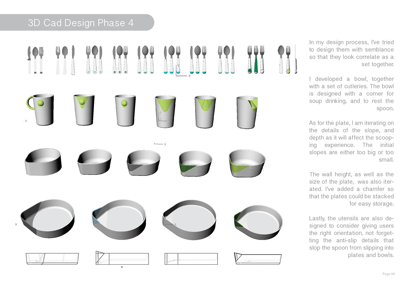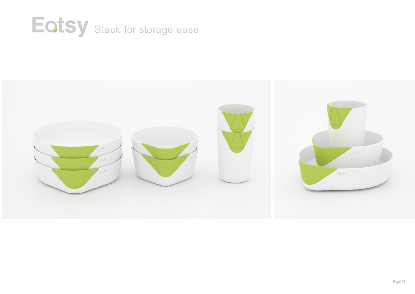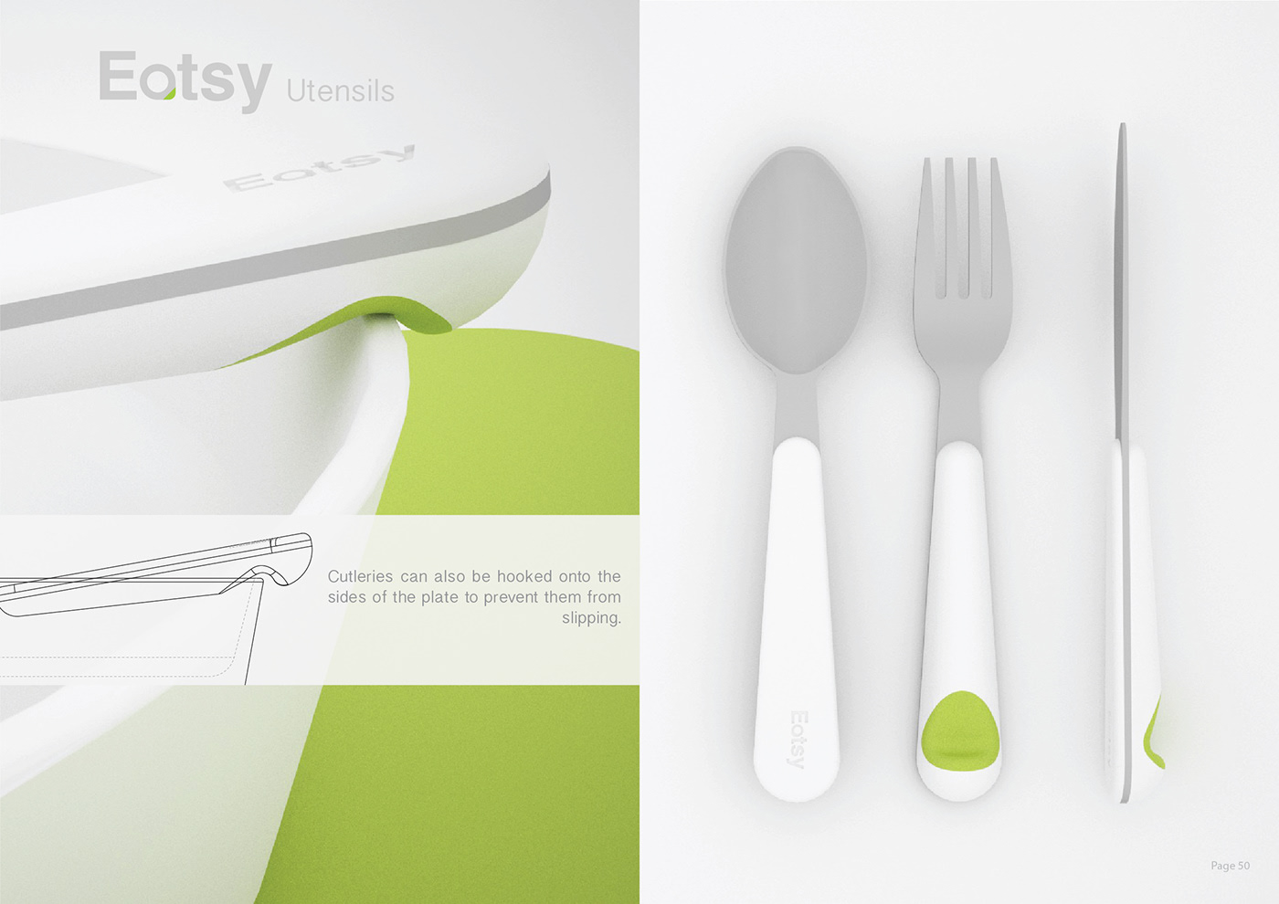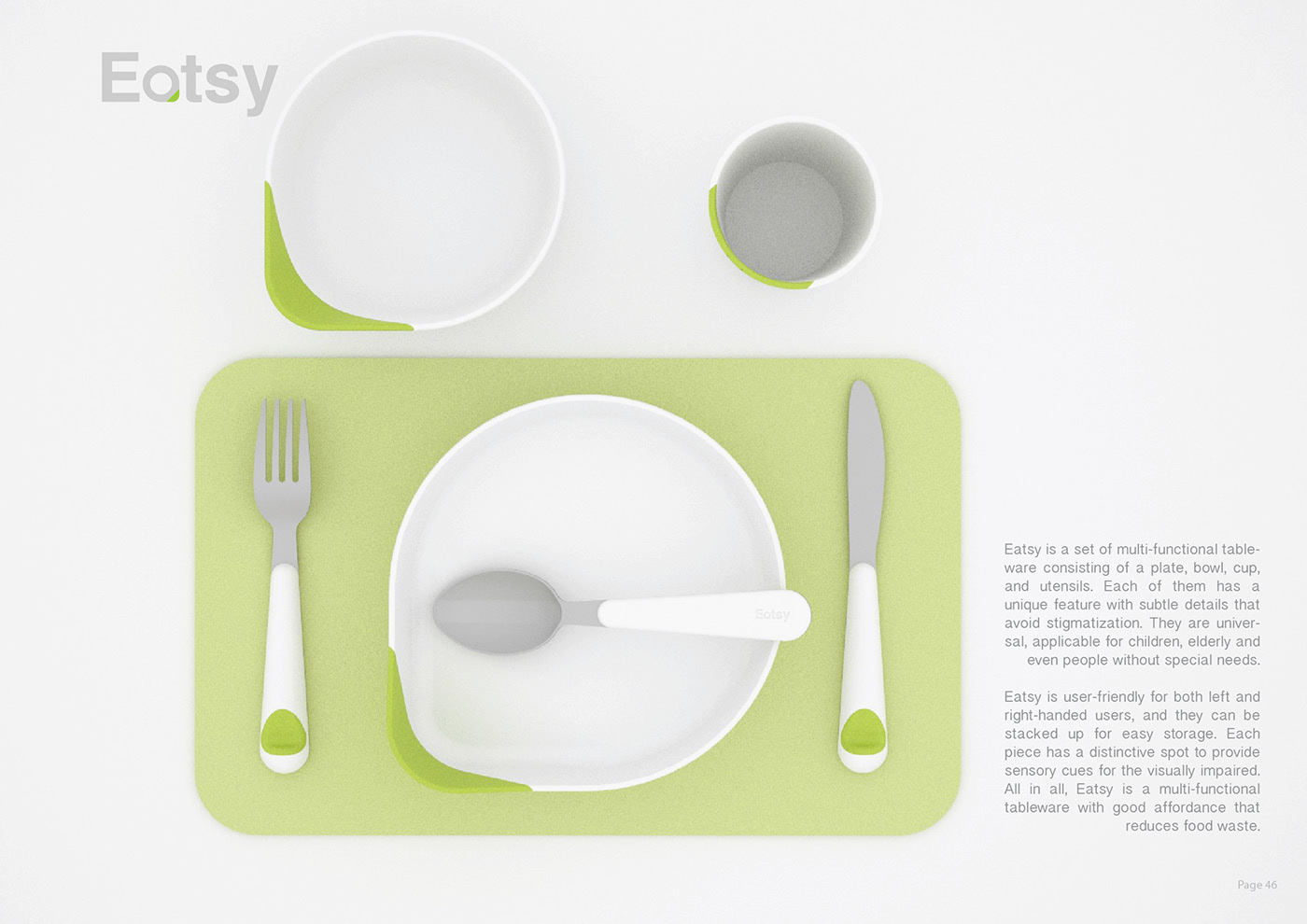 Eatsy 是一套多功能餐具,由盤子、碗、杯子和餐具組成。他們每個(gè)人都有一個(gè)獨(dú)特的功能,帶有微妙的細(xì)節(jié),可以避免污名化。它們是通用的,適用于兒童、老人甚至沒有特殊需要的人。Eatsy 對(duì)慣用左手和慣用右手的用戶都非常友好,它們可以疊放起來以便于存放。