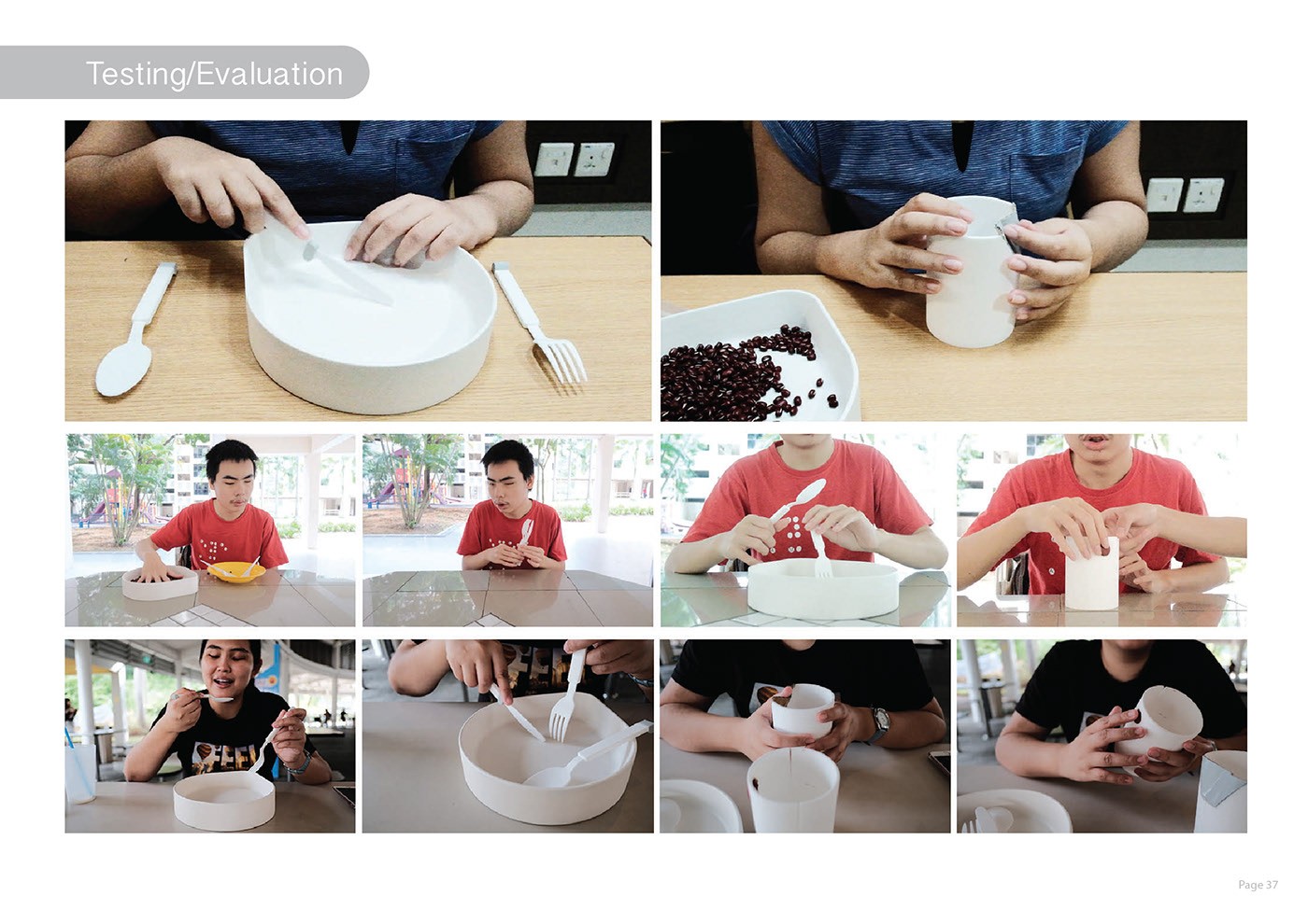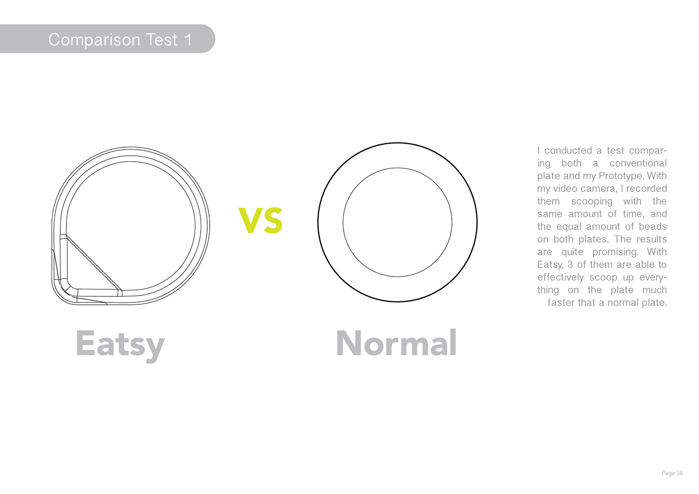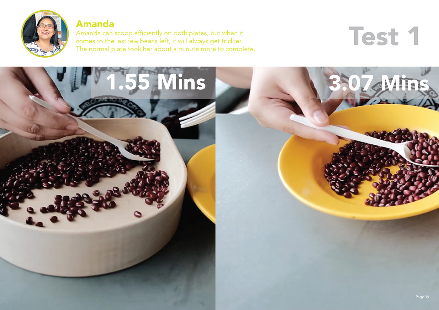 Eatsy 盤子的特點(diǎn)是有一個(gè)凸起的角落和斜坡來夾住食物。盤子的曲率作為引導(dǎo),將勺子引導(dǎo)到角落進(jìn)行舀。角落也可以作為飲用和傾倒的地方。
