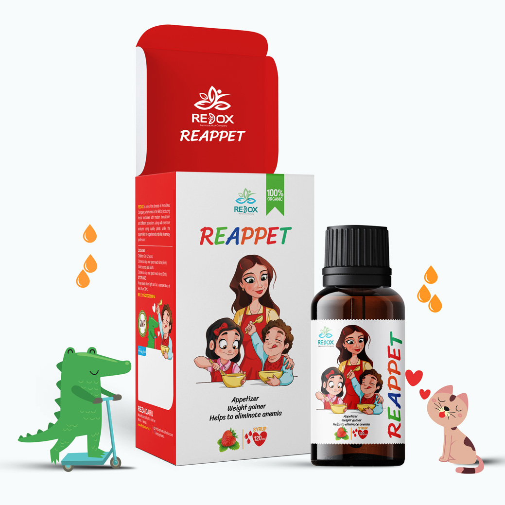 在開胃糖漿中,我們嘗試用紅色因?yàn)榧t色是用來做食物的暖色,在紅色旁邊,是一位慈祥的母親喂養(yǎng)她的孩子讓孩子產(chǎn)生吃的欲望,顏色的使用適合于產(chǎn)品和每個(gè)觀看者與產(chǎn)品溝通和購(gòu)買后的性格。