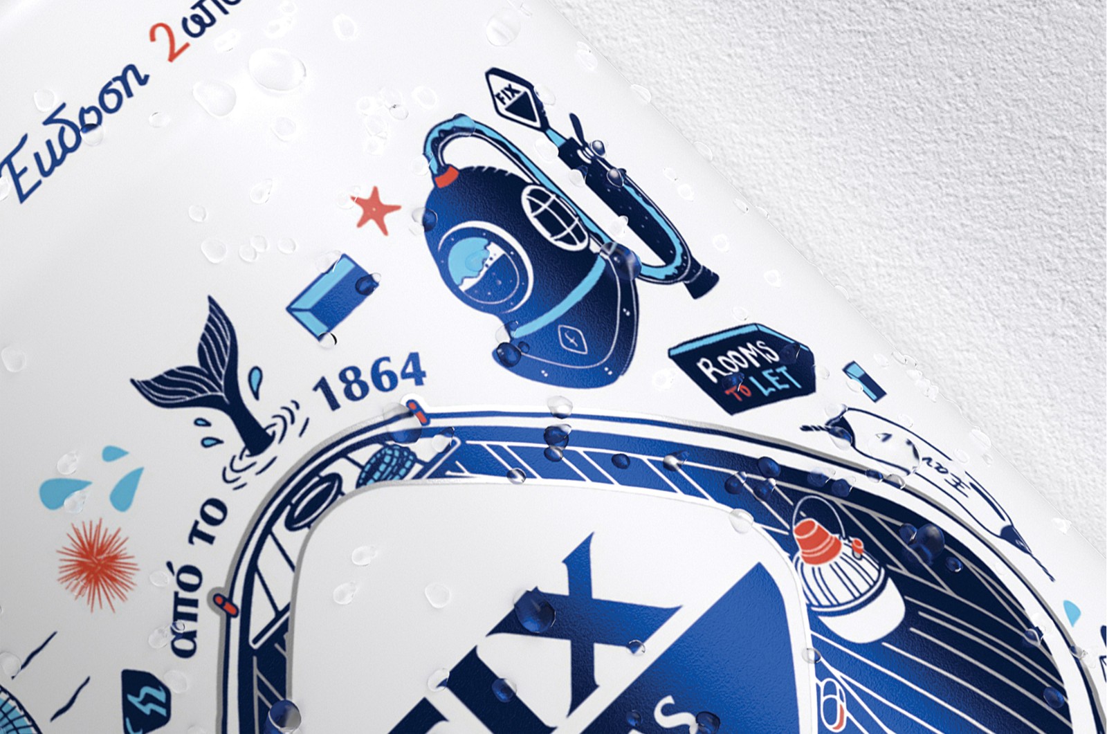 這些插圖因其大膽而引人注目,講述了隱藏地點(diǎn)的小而有趣的故事,這些故事在罐子的每一面都有不同的描繪。FIX Hellas 的標(biāo)志性菱形將其形狀賦予不同的當(dāng)?shù)赜⑿?,并且是我們?chuàng)造的圖像語言的一部分。