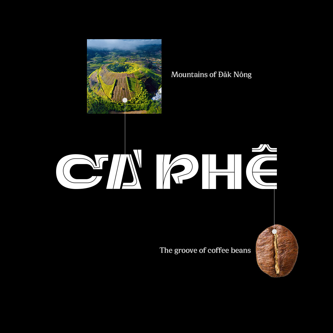 關(guān)于標(biāo)志,字體以咖啡作為標(biāo)志,根據(jù)居住在中部高地高地(如達(dá)農(nóng)、林同)的人們的文化和風(fēng)格進(jìn)行風(fēng)格化。字體風(fēng)格化,以增加咖啡包裝的身份和美感。