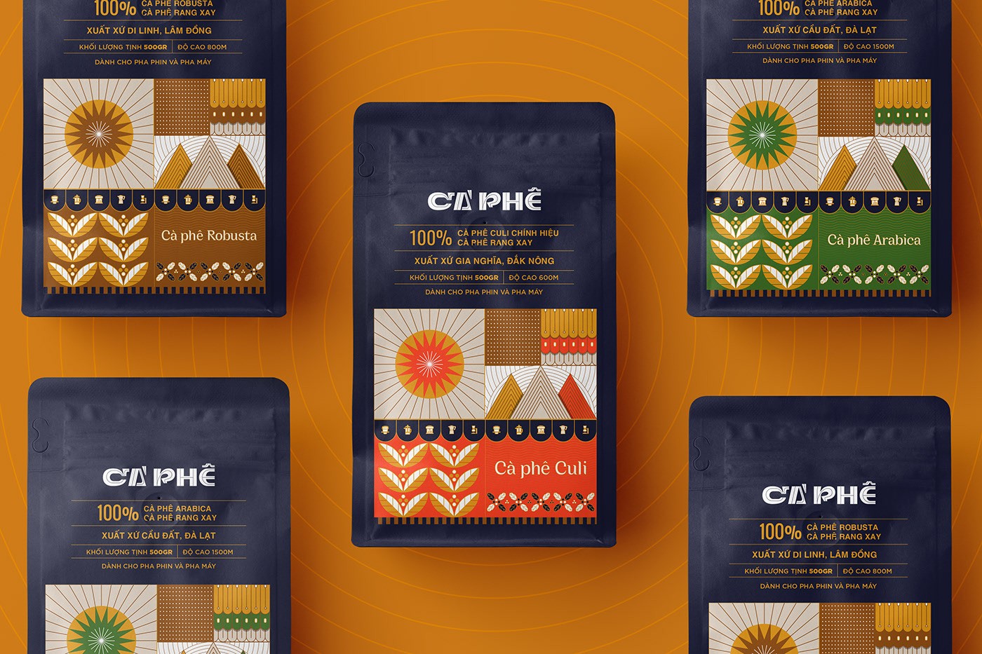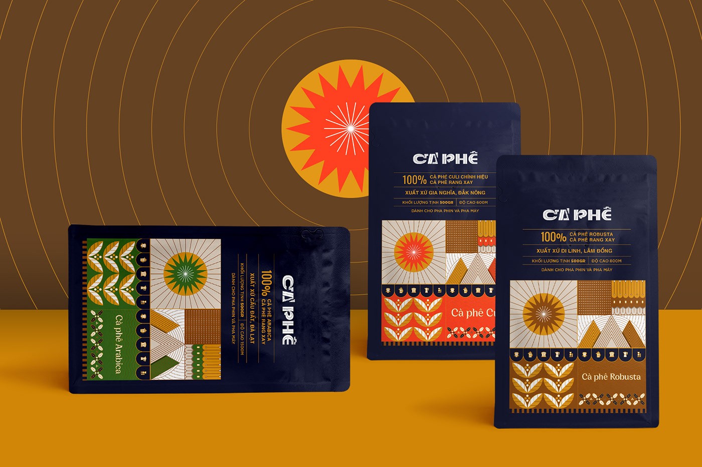 “Sunburned Plateau”是源自Dak Nong、Lam Dong和Da Lat的Culi、Arabica、Robusta 3個(gè)咖啡產(chǎn)品線的包裝概念和商標(biāo)。該項(xiàng)目的靈感來自上述三個(gè)地區(qū)的典型元素:高原、咖啡和陽光。