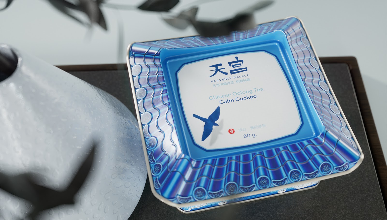 房屋的外墻裝飾有詳細(xì)的插圖,靈感來自古代大師的中國古典圖案。茶蒸云中的藝妓、竹瓦、中國燈籠——一切都適合平靜的思想和愉快的喝茶。產(chǎn)品線包括三個(gè)品種的中國傳統(tǒng)茶:經(jīng)典綠茶“智鸛”、烏龍茶“平靜杜鵑”和茉莉花綠茶。茶的品種以生活在中國的鳥類形象來比喻——聰明的鸛、平靜的杜鵑和自由的鴿子。設(shè)計(jì)師的想法是,一只飛過有蓋房子的鳥會(huì)投下陰影,房子越高,鳥到屋頂表面的距離越小,投下的陰影越短。