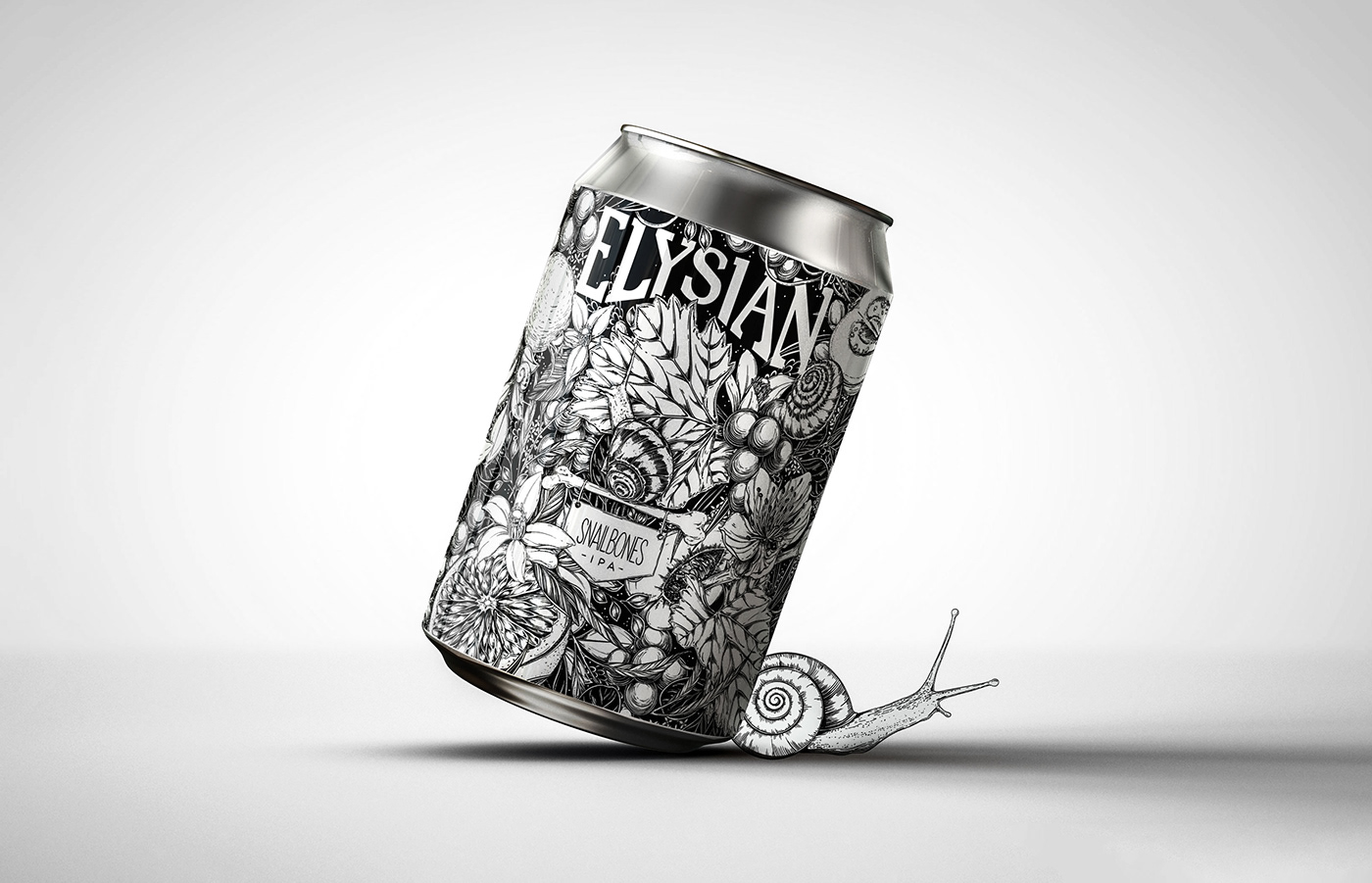 ELYSIAN 精釀啤酒包裝,在樹葉中行走的蝸牛
